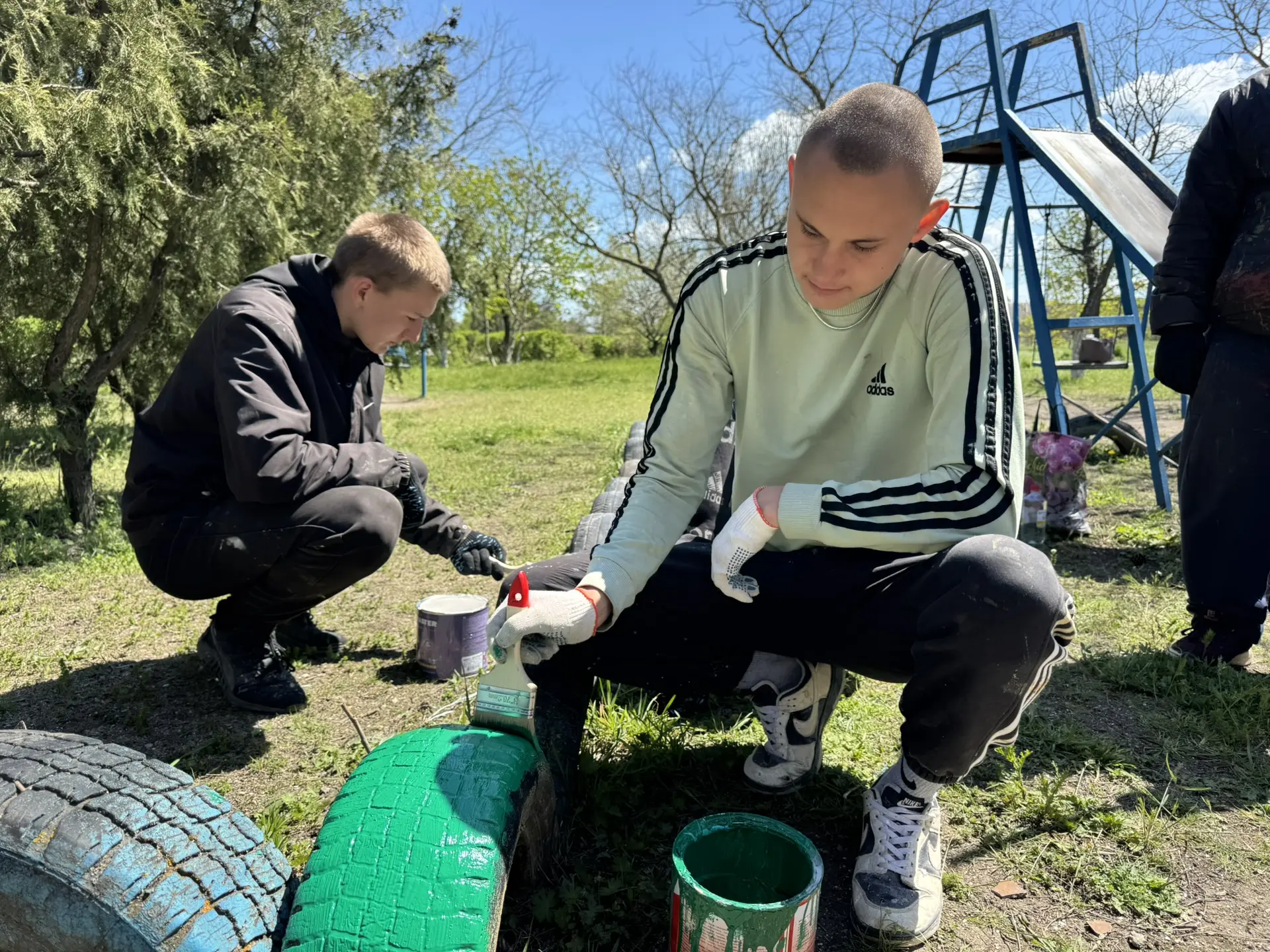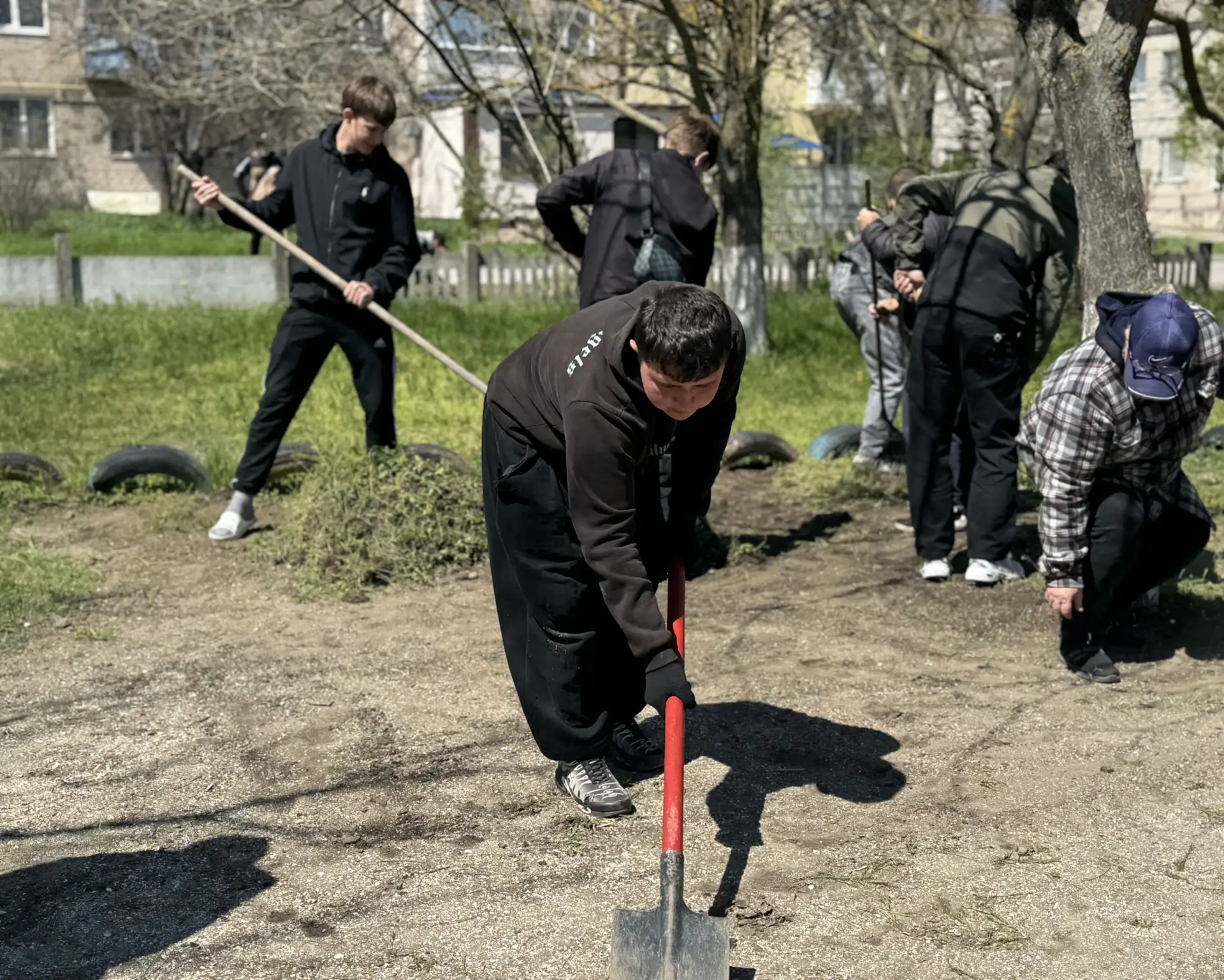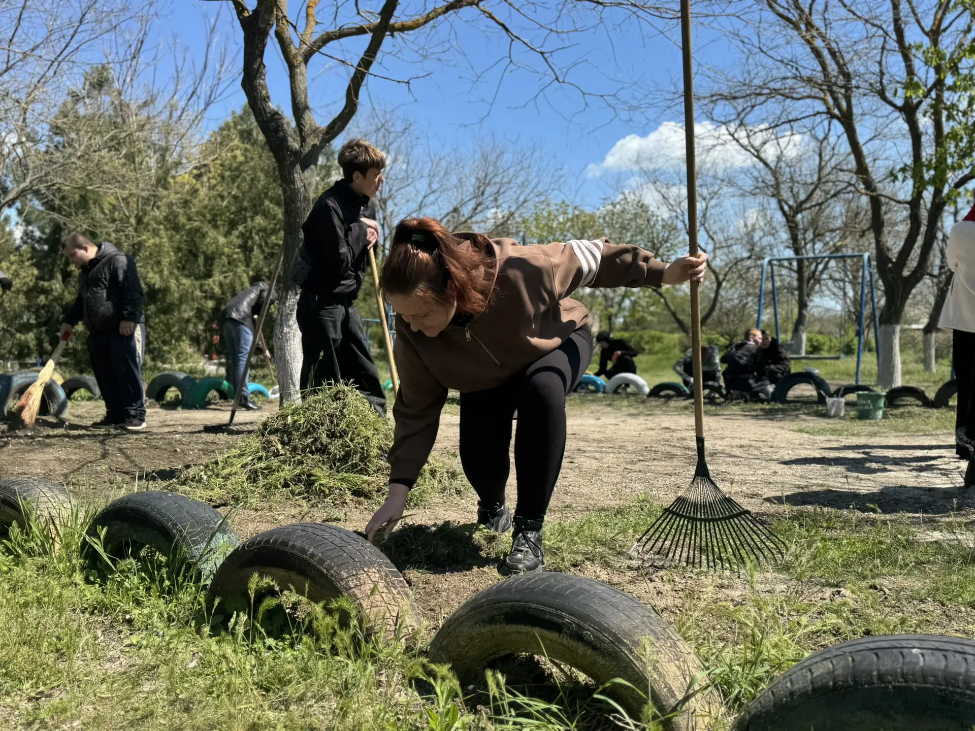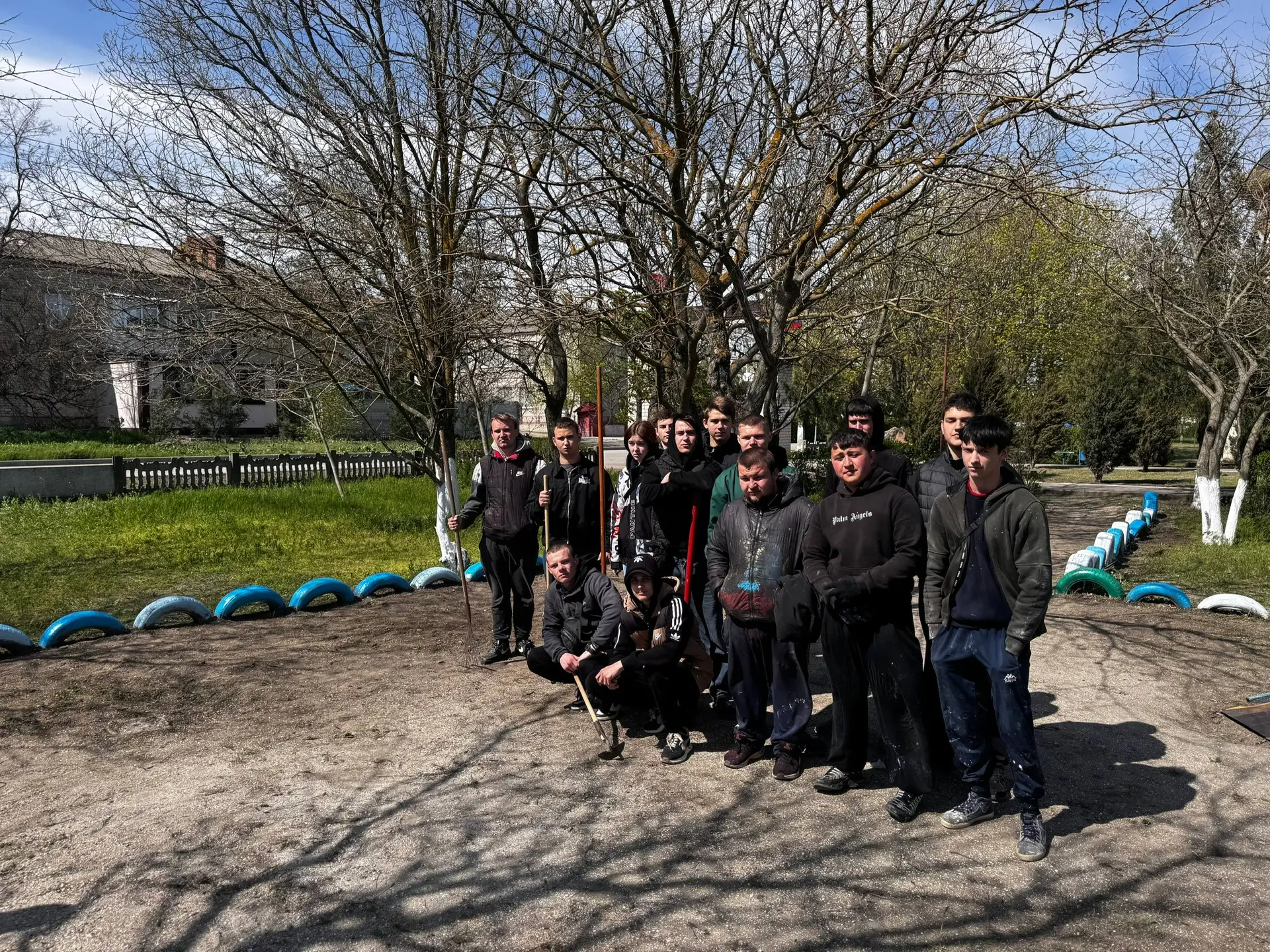 В преддверии Всероссийского субботника, который состоится 25 апреля 2026 года, студенты ГБПОУ ХО «Генический строительный колледж» провели волонтёрскую акцию по благоустройству территории детской площадки в городском парке «Афганская Слава».