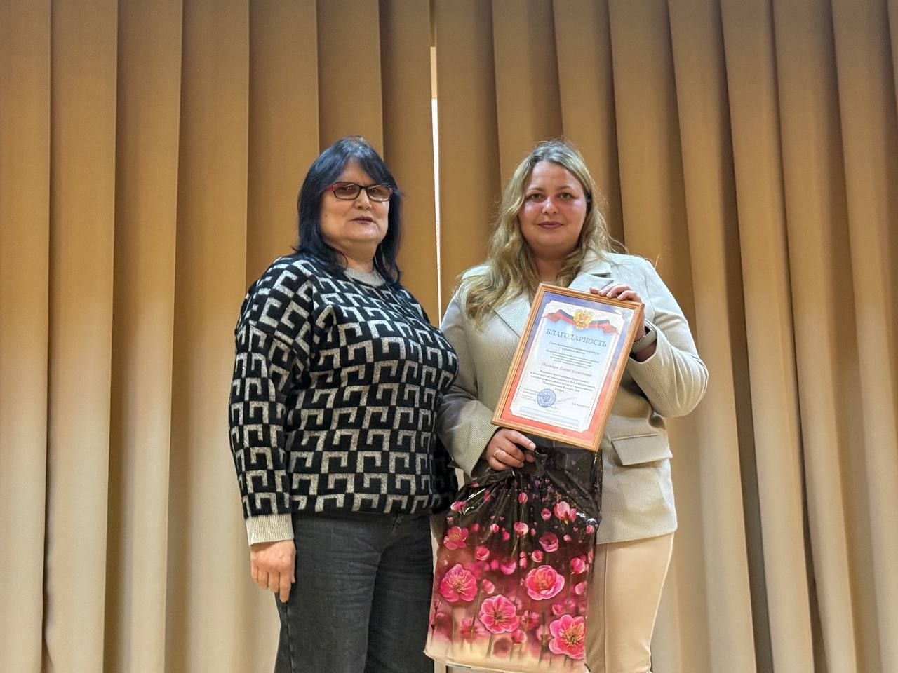 Главный специалист отдела культуры и туризма администрации Евгения Каюс, организатор мероприятия, от моего имени передала теплые поздравления и торжественно вручила подарки, грамоты и благодарности, отметив неоценимый вклад каждого работника культуры.
