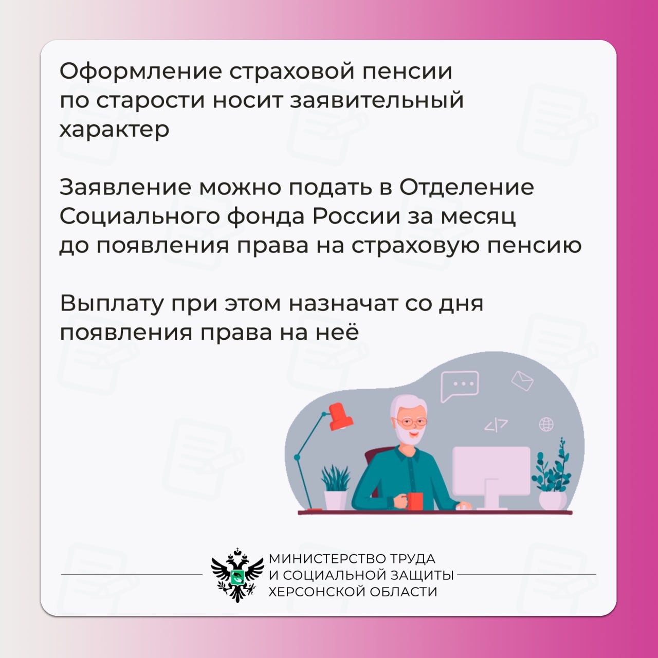 Когда подавать заявление на оформление пенсии по старости в Херсонской области?