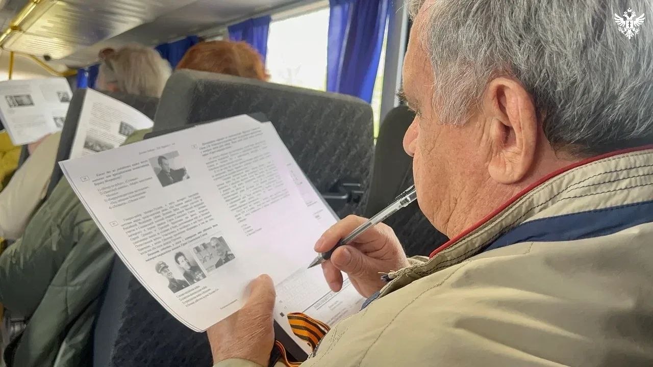 В этом году «Диктант Победы» в Херсонской области объединил кинотеатр, музей, пожарную часть, институт животноводства, площадки у Розового озера, позиции Донского казачьего батальона и даже экскурсионный автобус, который проехал по историческому маршруту в Геническе.
