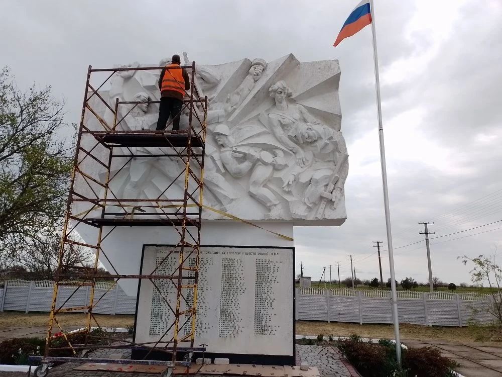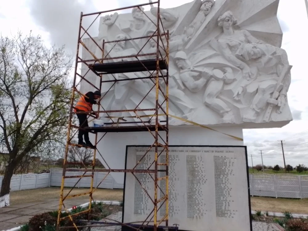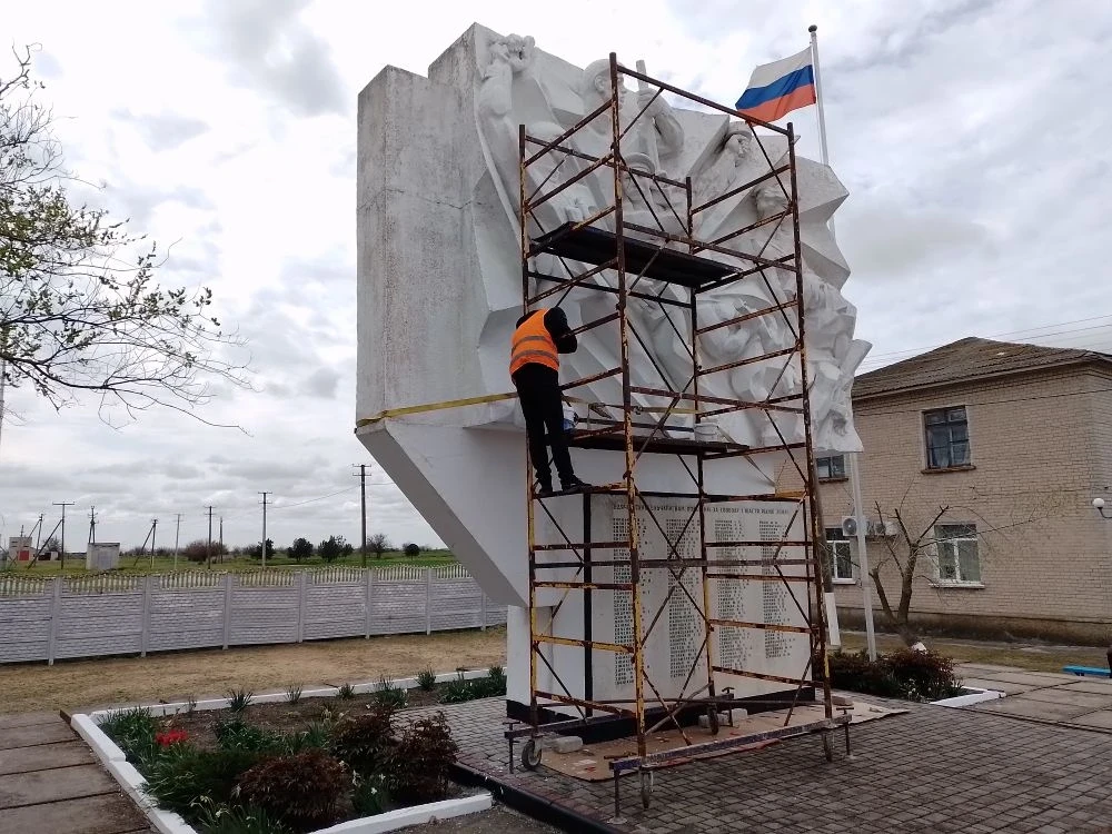 Работники МКУ «Горжилстрой» приступили к косметическому ремонту памятника «Воинам односельчанам», расположенного в селе Плавское Генического муниципального округа.
