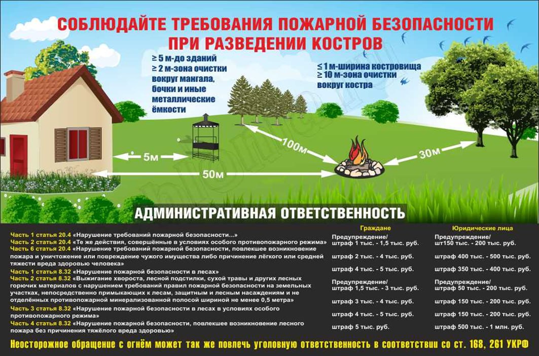 · До деревьев, сухой травы, мусора — не менее 2 м.