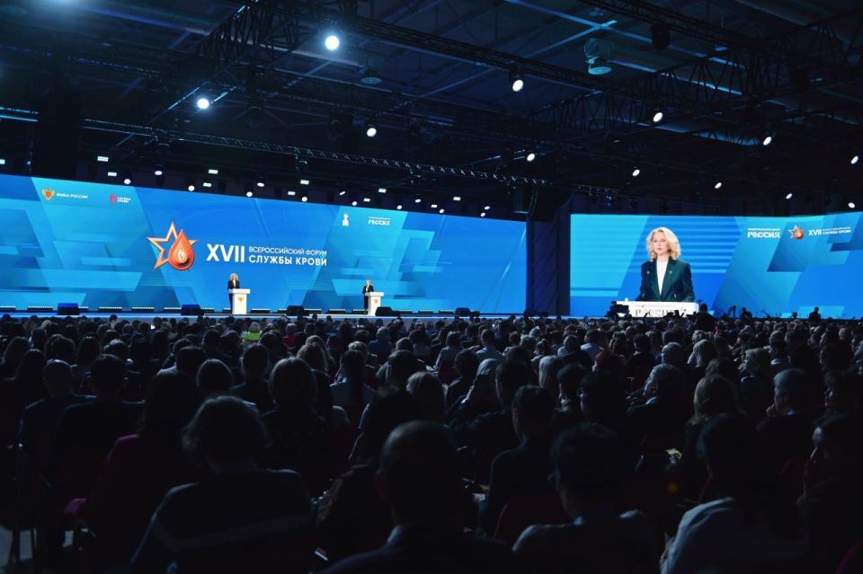 Вице-премьер Татьяна Голикова приняла участие в торжественном открытии XVII Всероссийского форума службы крови в Национальном центре «Россия».