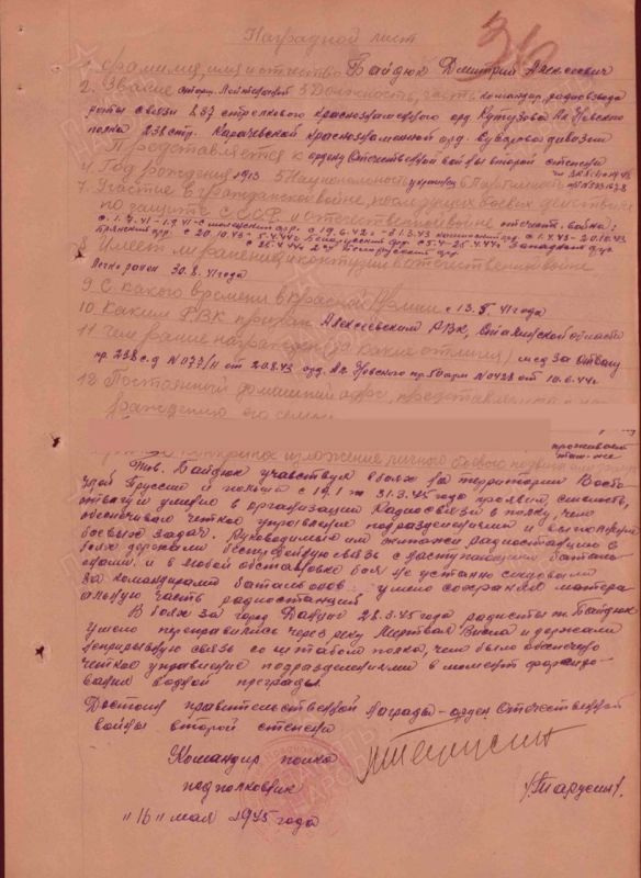 В своей службе товарищ Байдюк исполнял обязанности командира роты и организатора радиосвязи в полку.
