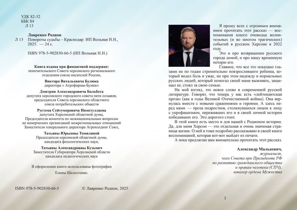 О своём произведении Родион рассказывал мне в в эфире авторской программы «Малькевич новых регионов» на SOLOVIEV.LIVE. Очень советую посмотреть этот эфир. И, конечно, обязательно прочитать сам рассказ!