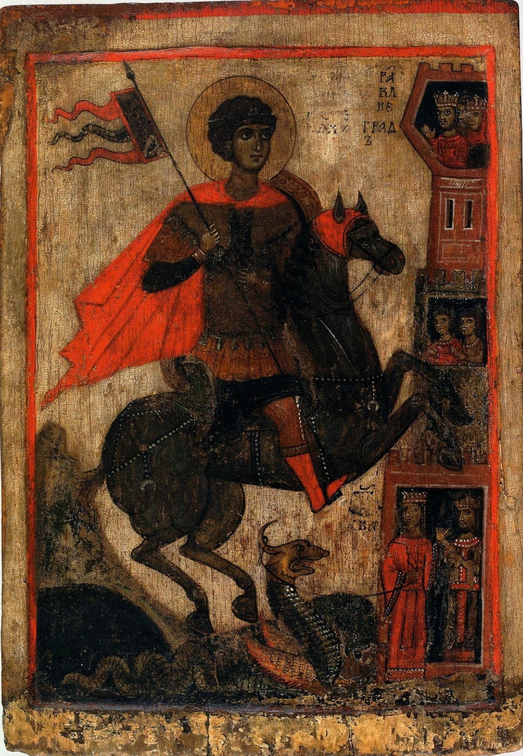 Молите Бога о нас, святые великомучениче и победоносче Георгие и благоверный княже Александре, яко мы усердно к вам прибегаем, скорым помощникам и молитвенникам о душах наших.