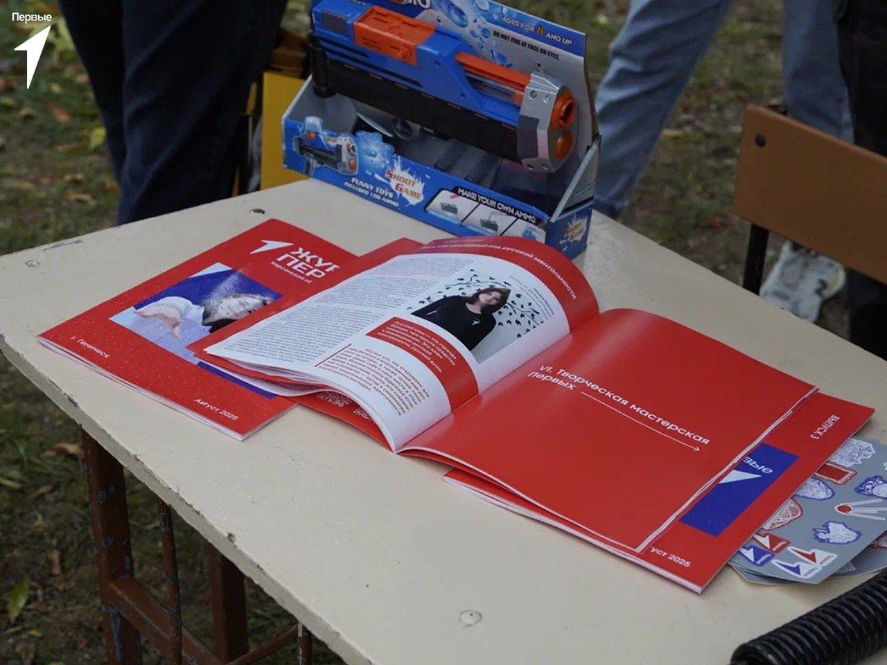 1Для ребят была открыта палатка Первых, где они смогли проверить свою ловкость, познакомиться с печатными изданиями регионального отделения Движения Первых, такими, как «Журнал Первых», сборники «Связь поколений» и «Диалог о миссии СВО», пообщаться с представителями Движения и получить в подарок сувенирные стикеры.