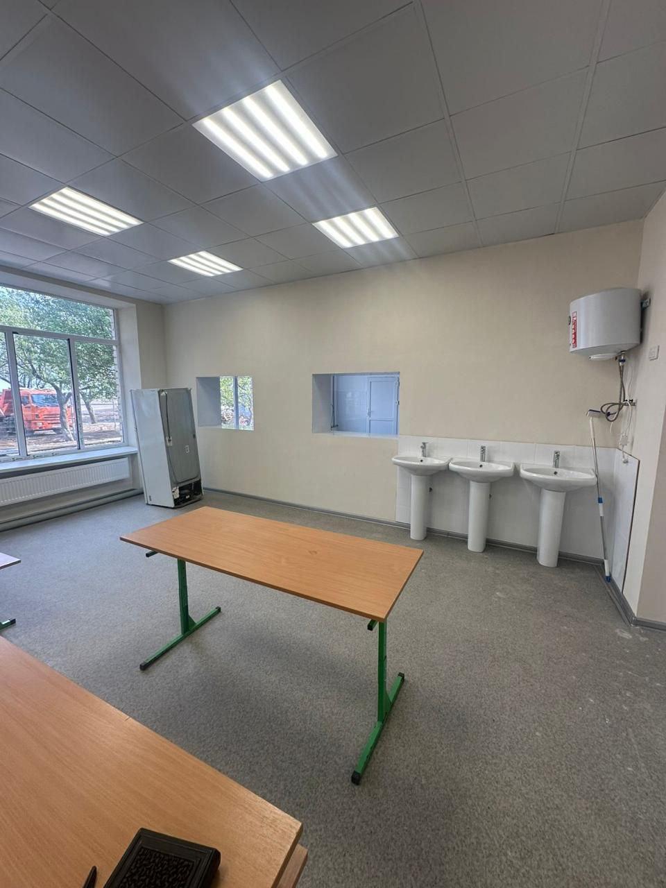 Сейчас идет ремонт второй части здания. А еще в школе появится современный пищеблок. Раньше еду для школьников привозили, теперь же всё будет в одном здании.