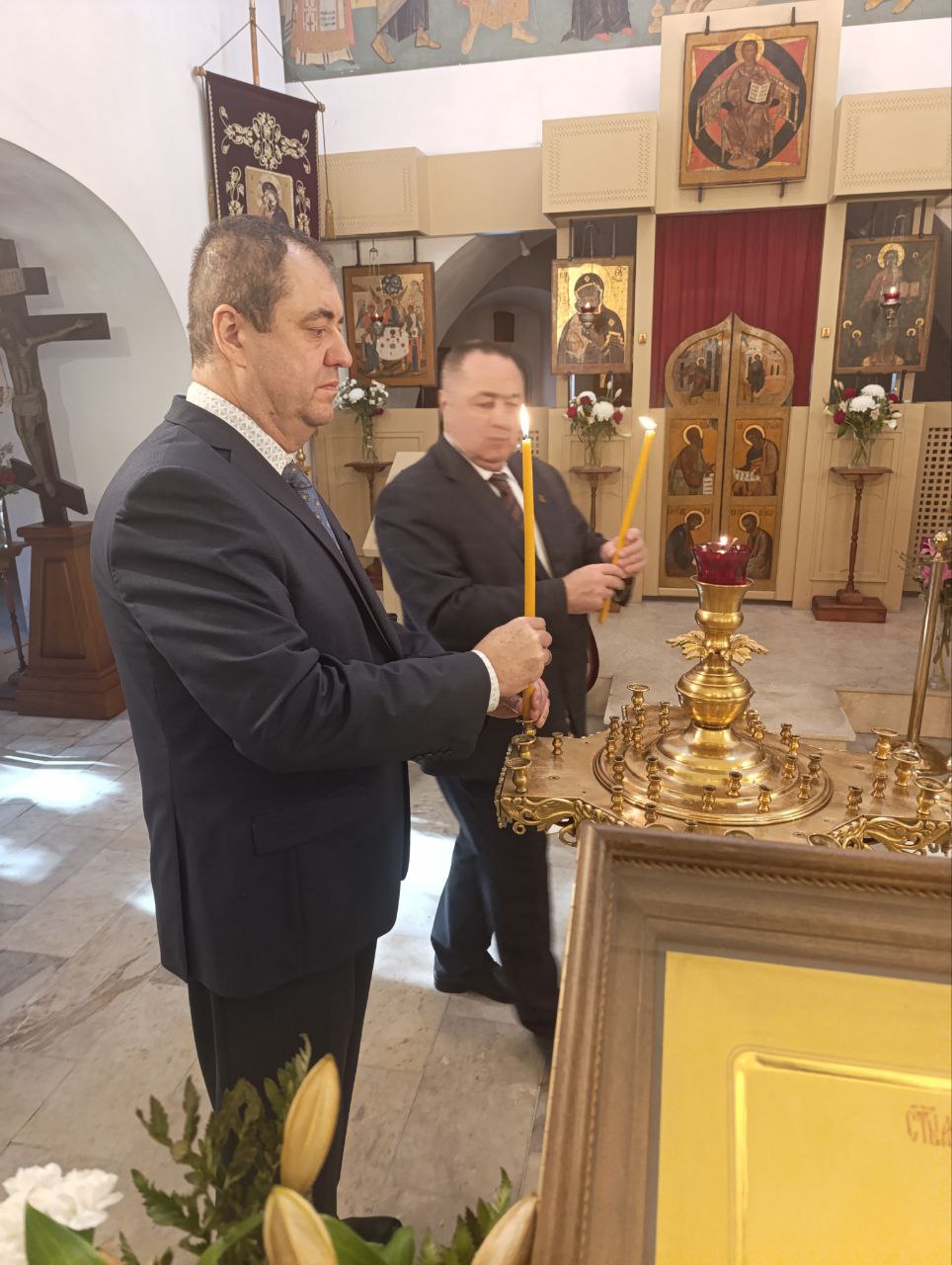 В молебне приняли участие Руководитель Постоянного Представительства Херсонской области при Правительстве РФ Владимир Боделан, Руководитель Представительства Запорожской области в Москве Сергей Гуляев, Руководитель представительства ДНР в Москве Ольга Макеева, заместитель Председателя Народного Совета ЛНР Денис Колесников, Председатель Комитета Народного Совета ЛНР по аграрной политике Василий Леонов.