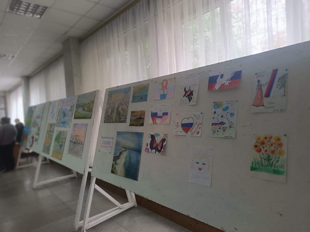 В фойе Скадовского Центра культуры и досуга к годовщине воссоединения сельские Дома культуры муниципального округа организовали выставки воспитанников художественных кружков.