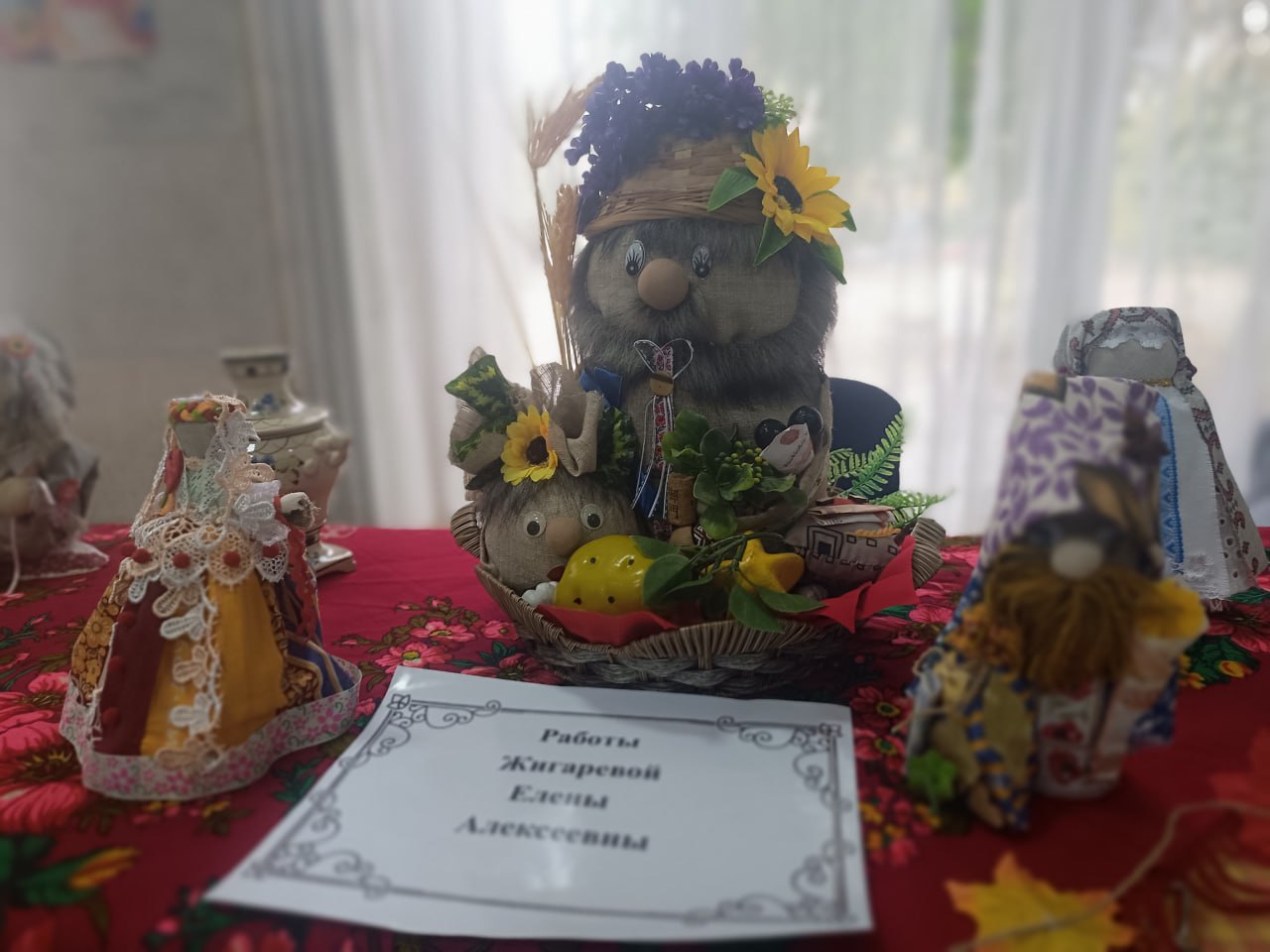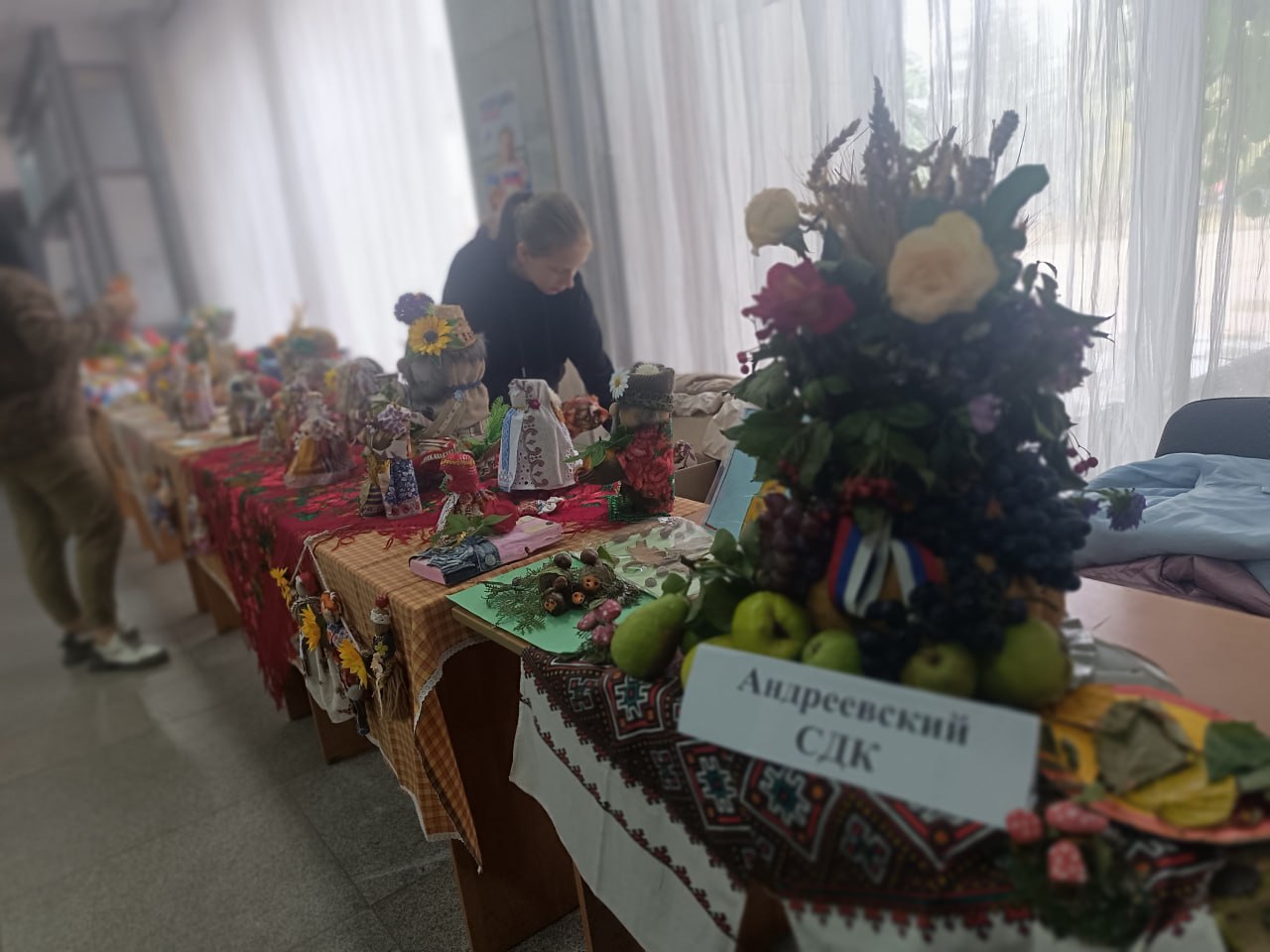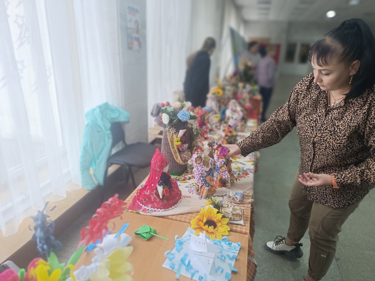 На столах, выставленных вдоль стены ЦКД можно было увидеть и рукотворные куклы, и объемные аппликации, и натюрморты, привезенные из села Широкого и поселка Лазурное Скадовского муниципального округа.