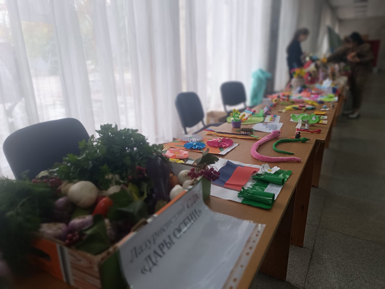 Здесь на стендах можно увидеть и детские рисунки, и аппликации, выполненные из самых неожиданных материалов (начиная от колосков, и заканчивая спагетти и макаронами).