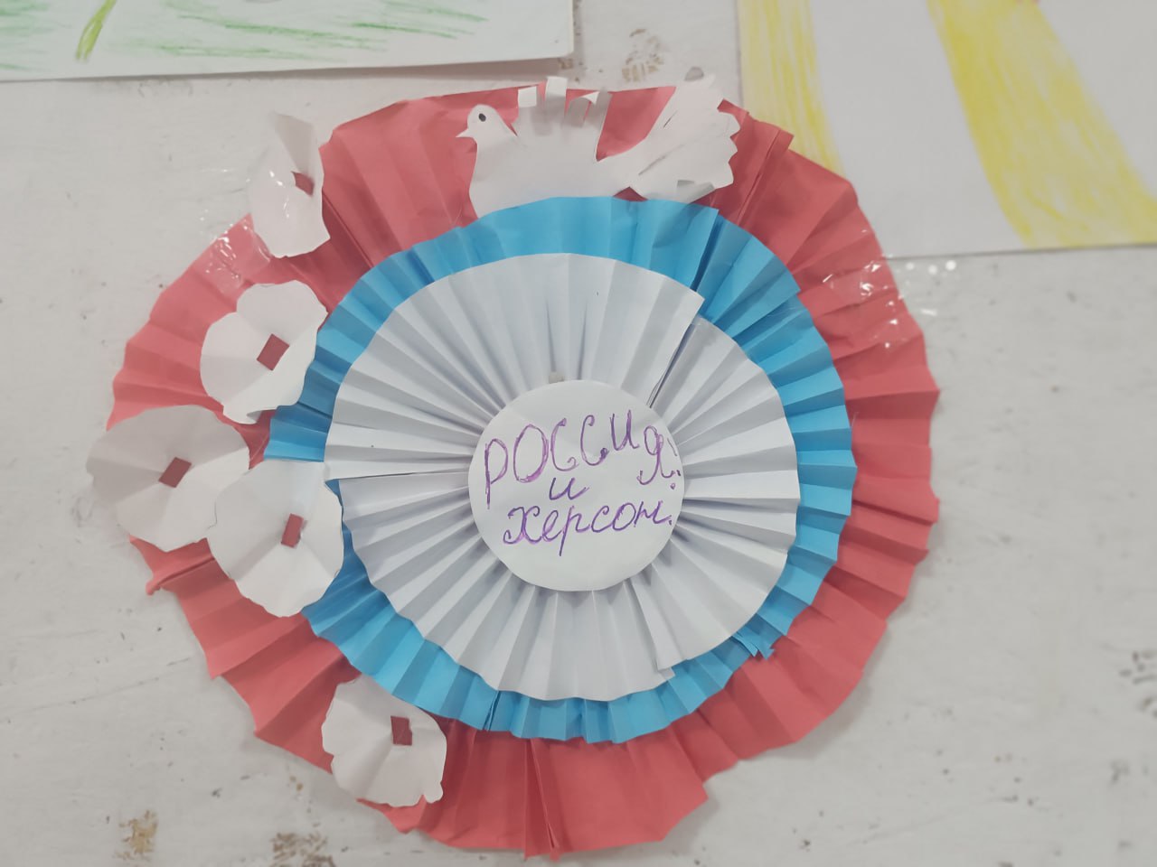 - Мы старались выставку подготовить именно к этой дате, к годовщине воссоединения Херсонской области с Россией. Все вот эти рисунки и аппликации делали дети вместе с работниками сельского Дома культуры, -