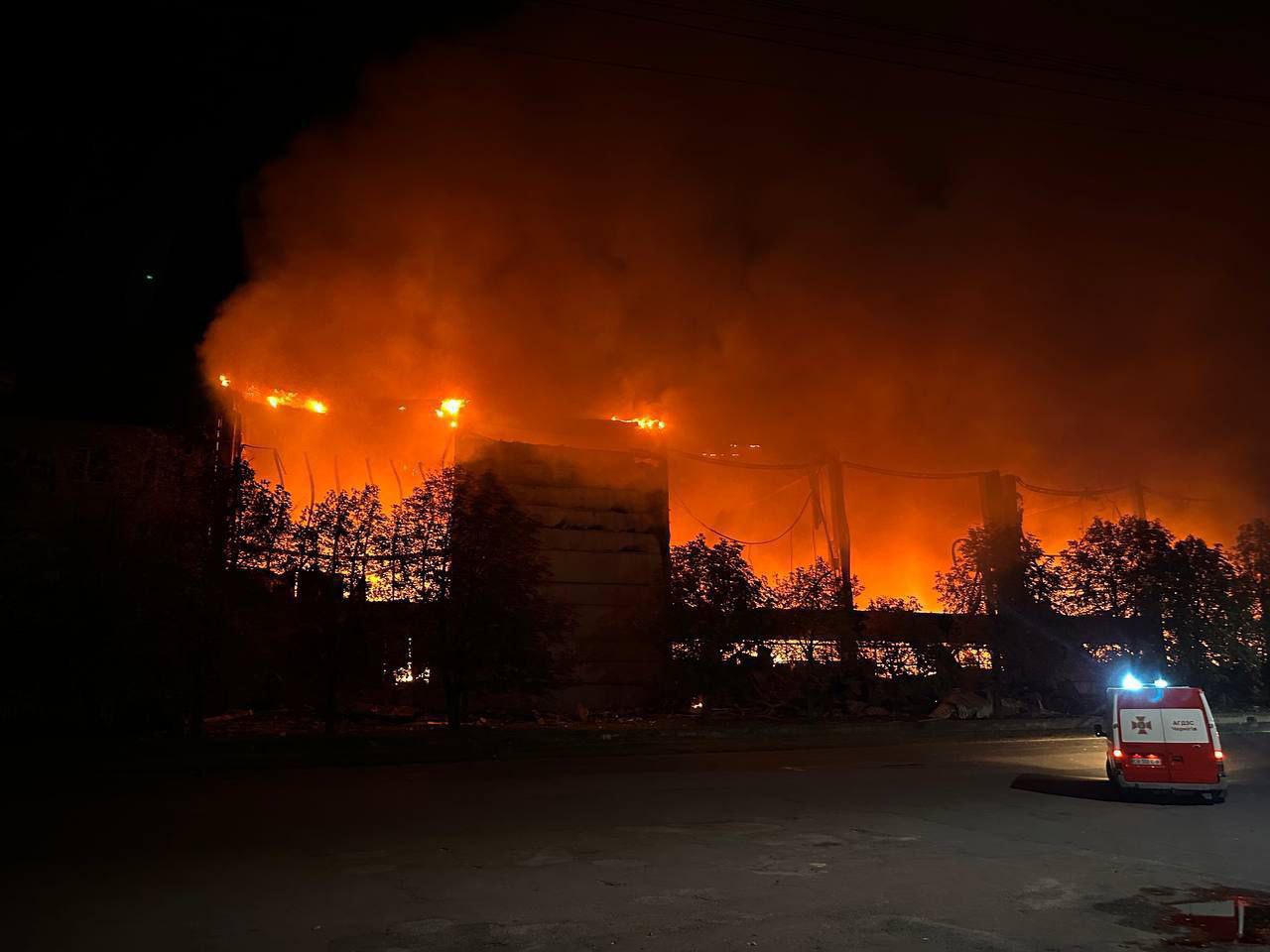 В Корюковке Черниговской области продолжается пожар на пораженном объекте ВСУ