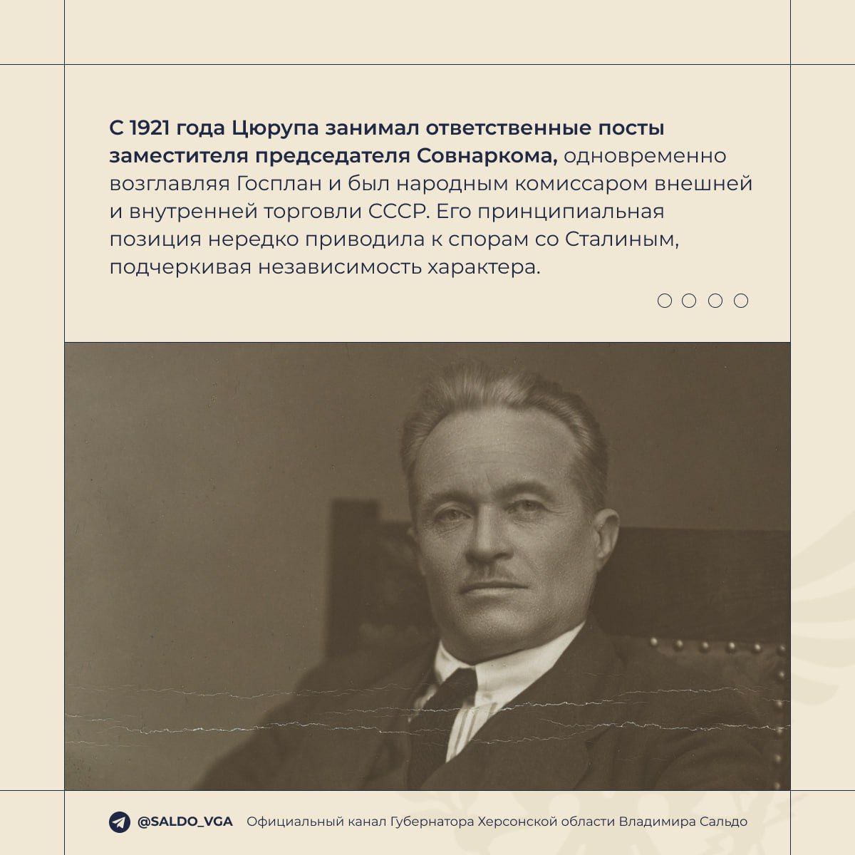 1 октября 1870 в Алешках родился видный советский государственный и партийный деятель Александр Дмитриевич Цюрупа