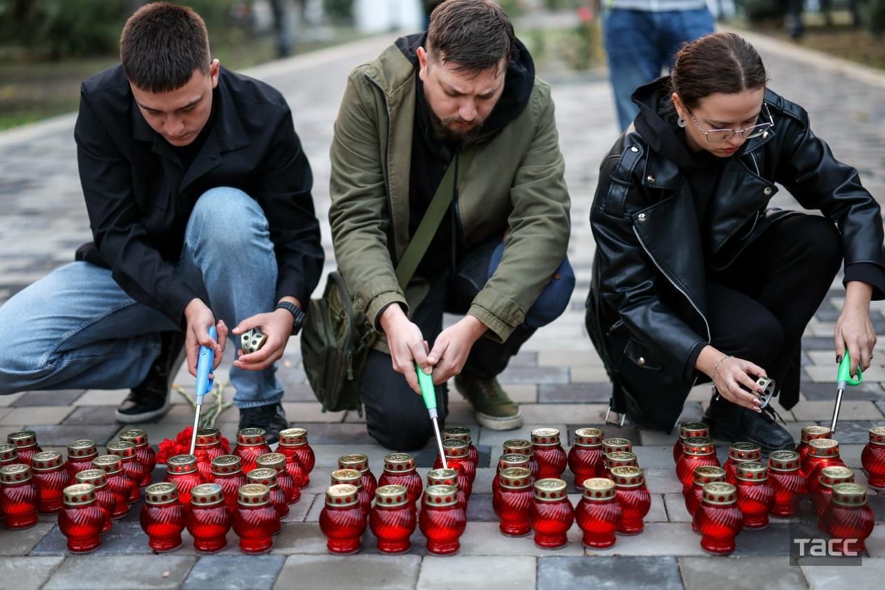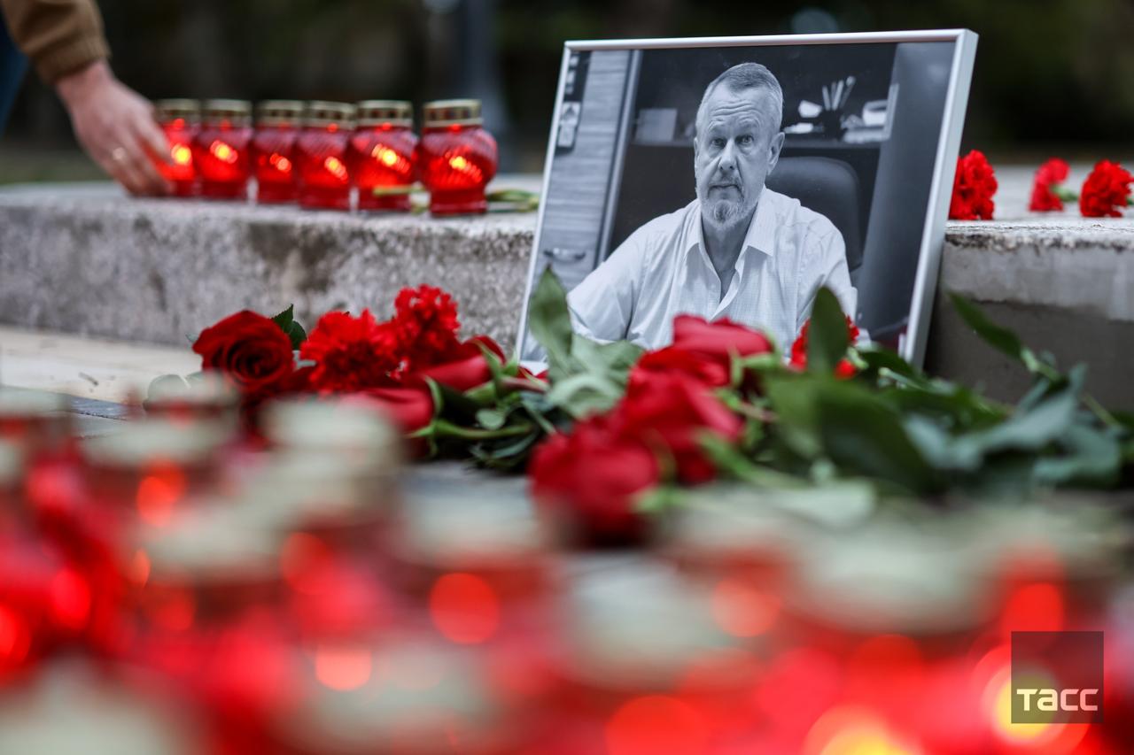 Стихийный мемориал в память о погибшем главе совета депутатов Новой Каховки Леонтьеве в Геническе.