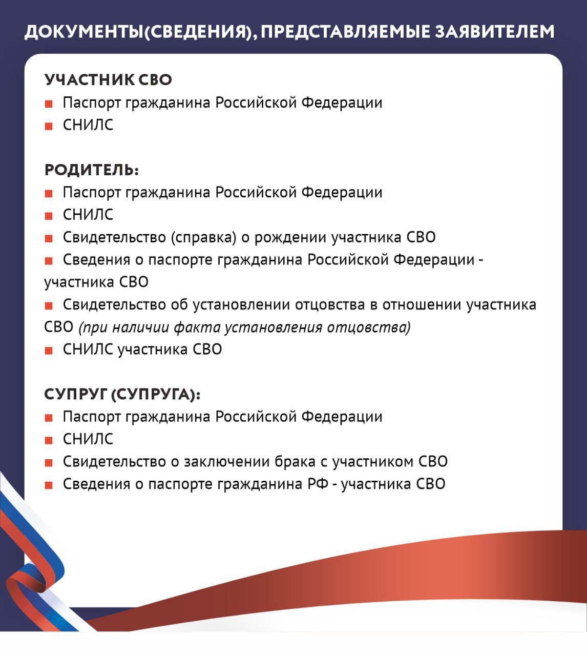 Для этого необходимо предоставить документы, подтверждающие родственные связи с участником СВО и его паспортные данные.