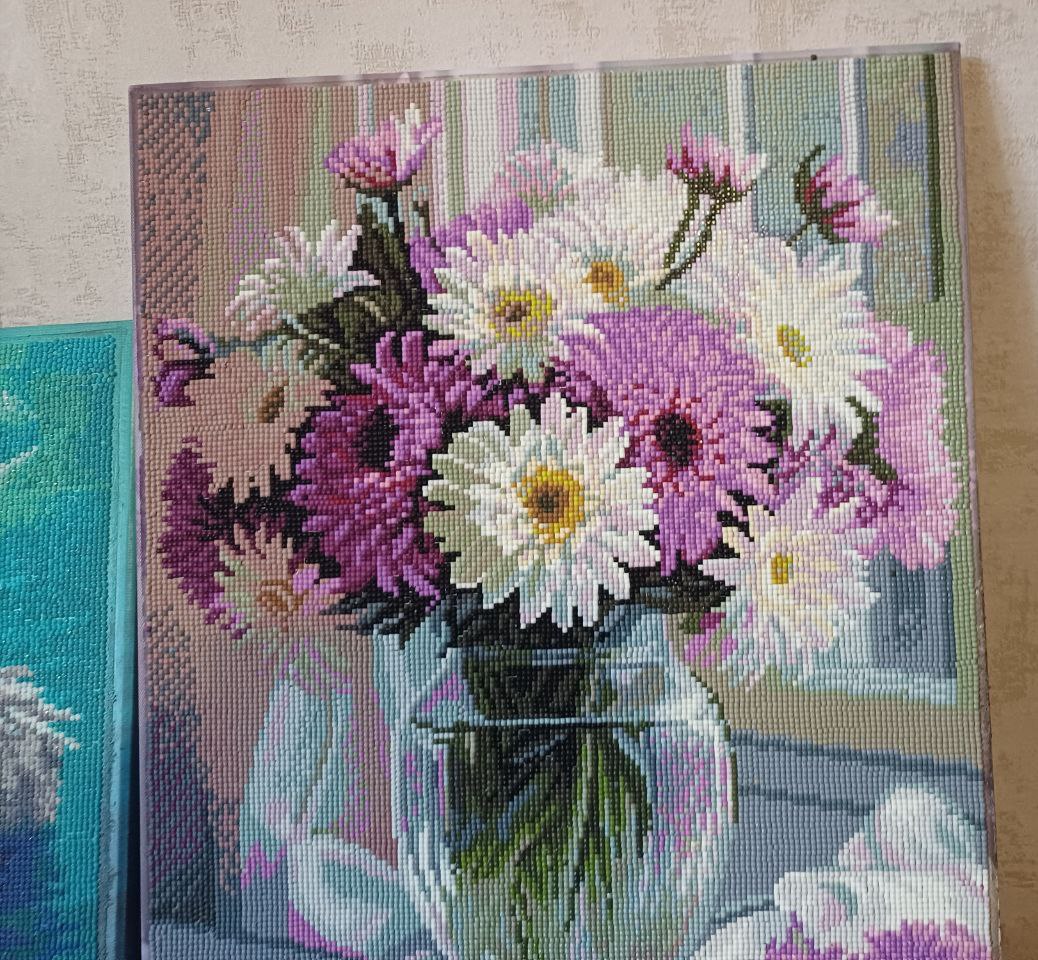 В её доме можно увидеть настоящую галерею картин, выполненных в технике алмазной мозаики.