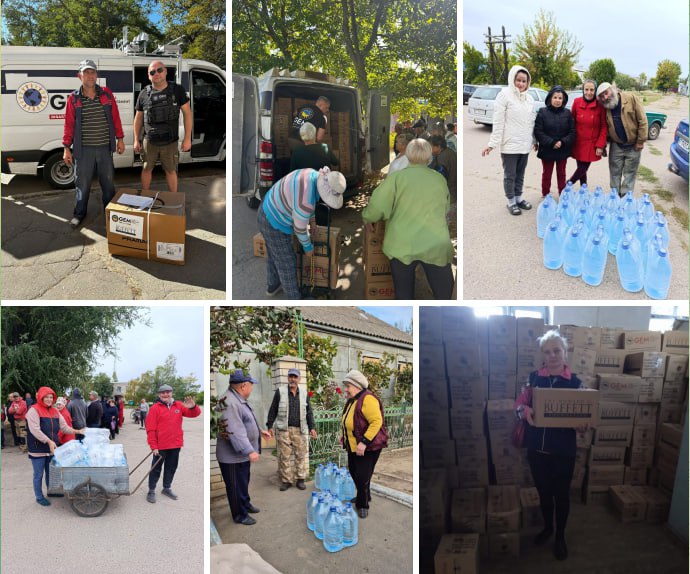 Представители Global Empowerment Mission совместно с The Howard G. Buffett Foundation доставили питьевую воду в Белозерку, Белый Колодец, Новопавловку, Молодежное, Александровку и Брускинский.