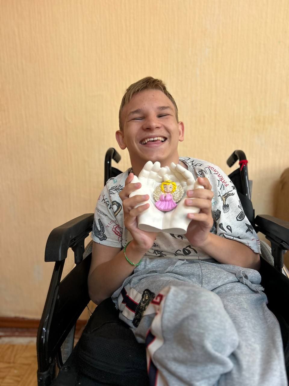 Закизьянов Даниил, категория среднего школьного возраста 6 -8 класс, номинация сувенирная продукция " Руки счастья"(работа выполнена из гипса )