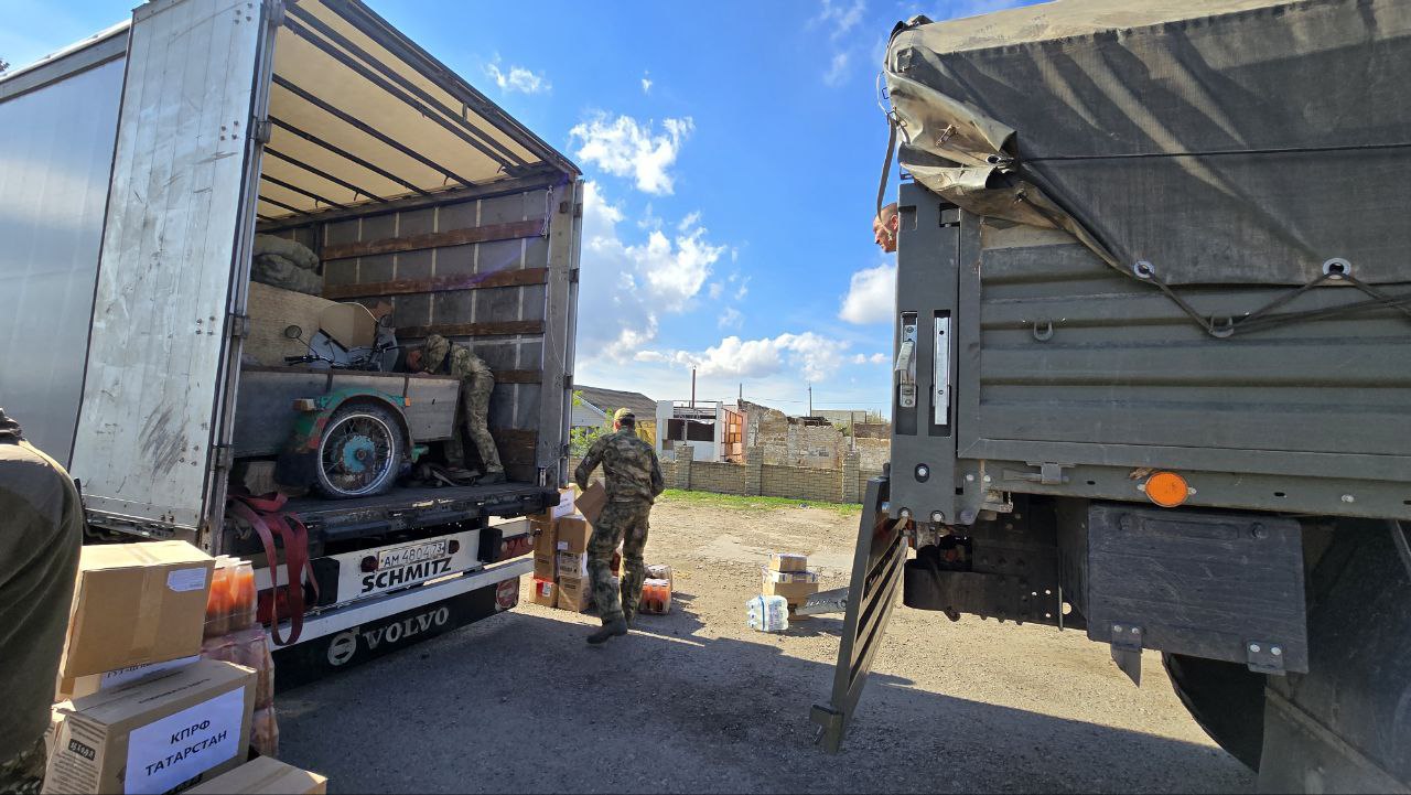 После разгрузки на распределительном центре гуманитарной помощи Херсонского регионального отделения КПРФ груз будет доставлен мирному населению и военнослужащим.