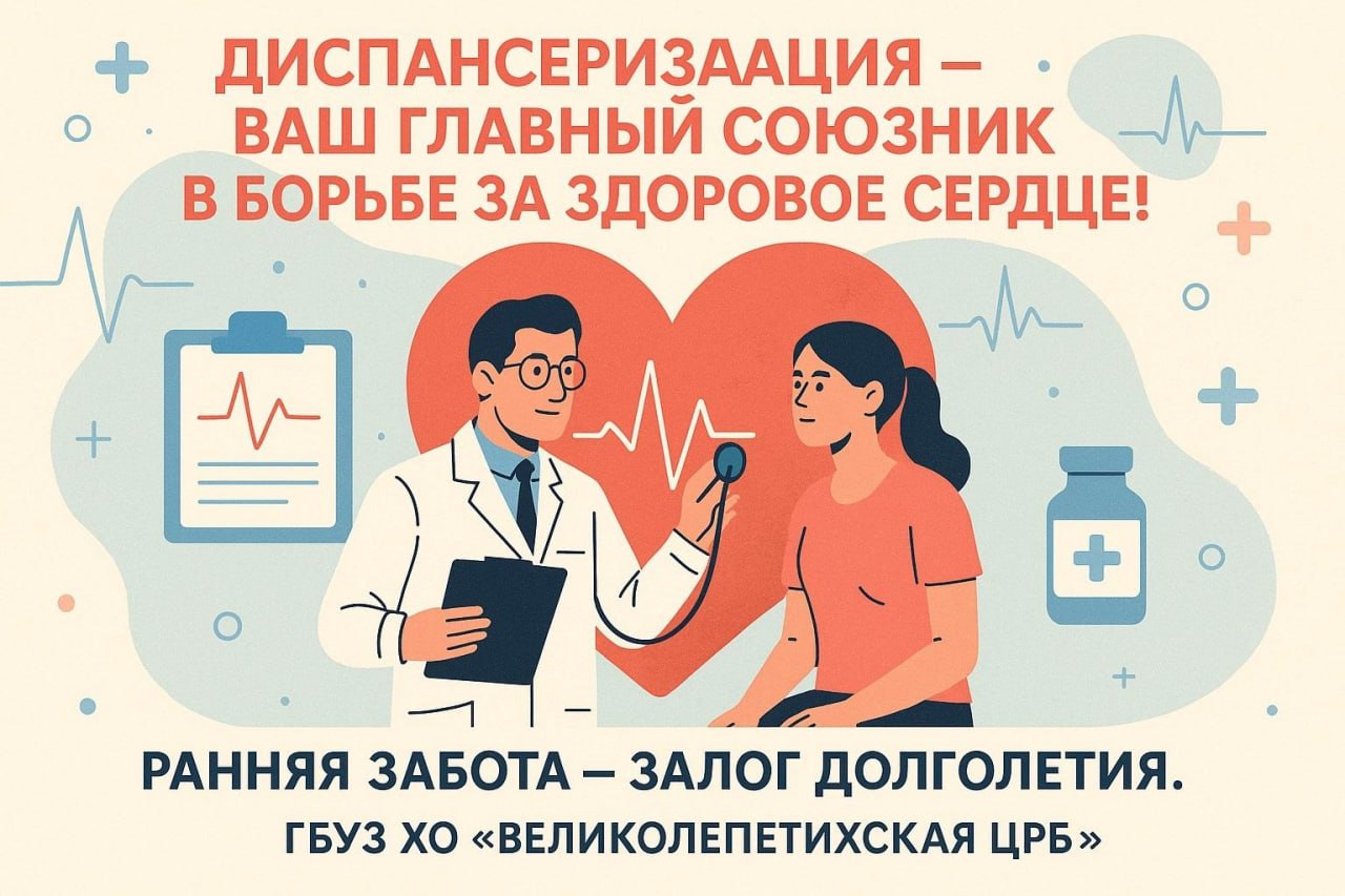 Ваше сердце – бесценный орган. Не ждите симптомов! Запишитесь на диспансеризацию в Великолепетихскую ЦРБ уже сегодня и позаботьтесь о своем сердце на ранней стадии.