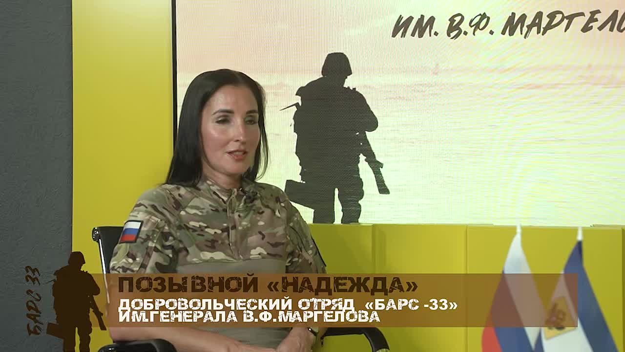 «Надежда» — доброволец подразделения «БАРС-33» им. Генерала В. Ф. Маргелова. Её позывной — в память о матери и символ веры в Победу.