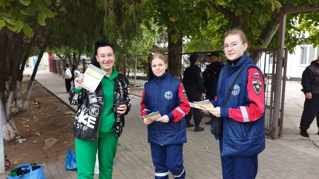 Добровольцы Всероссийской общественной молодежной организации "Всероссийский студенческий корпус спасателей" на оживленных улицах города раздали прохожим памятки "Действия в чрезвычайных ситуациях".