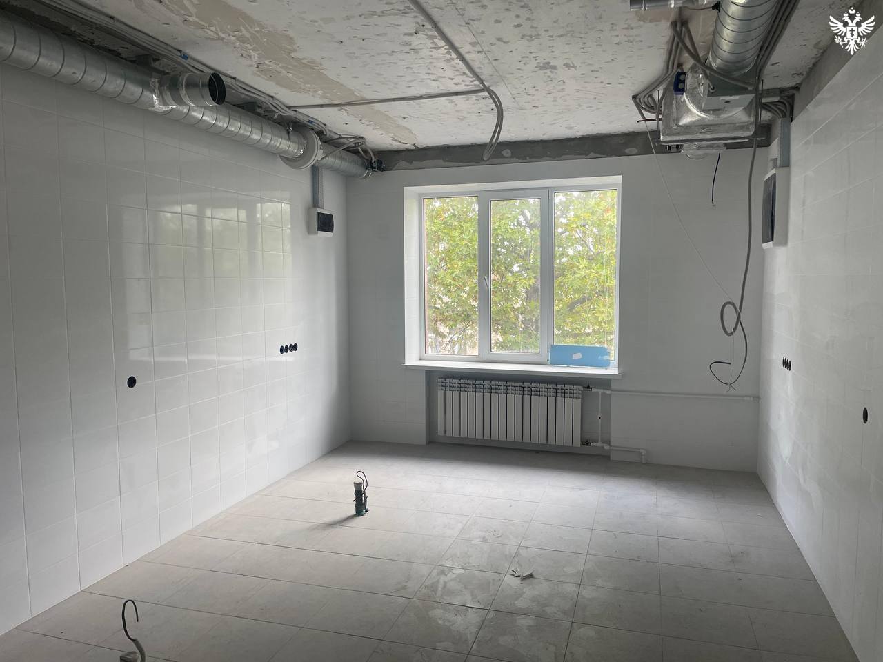 Работы ведут 28 специалистов из Краснодарского края. Основное внимание уделяется обновлению терапевтического отделения на улице Мира. На объект уже доставлен лифт и необходимое оборудование для его установки.