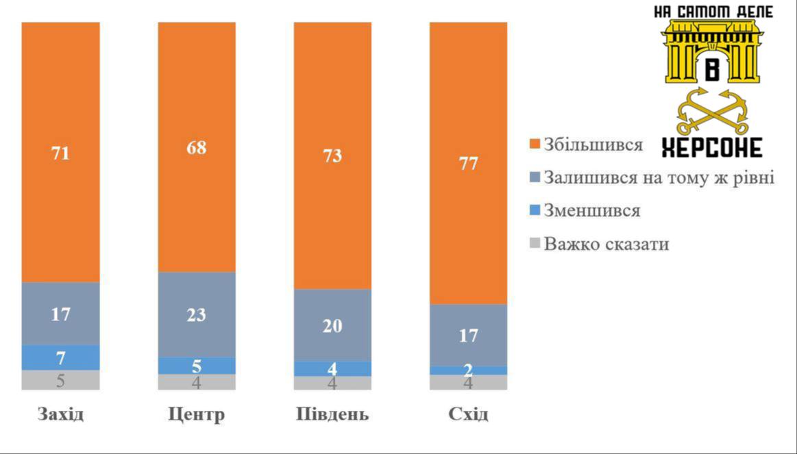 По восприятию коррупции, рост чаще всего отмечали жители восточных областей — 77% и южных — 73%.