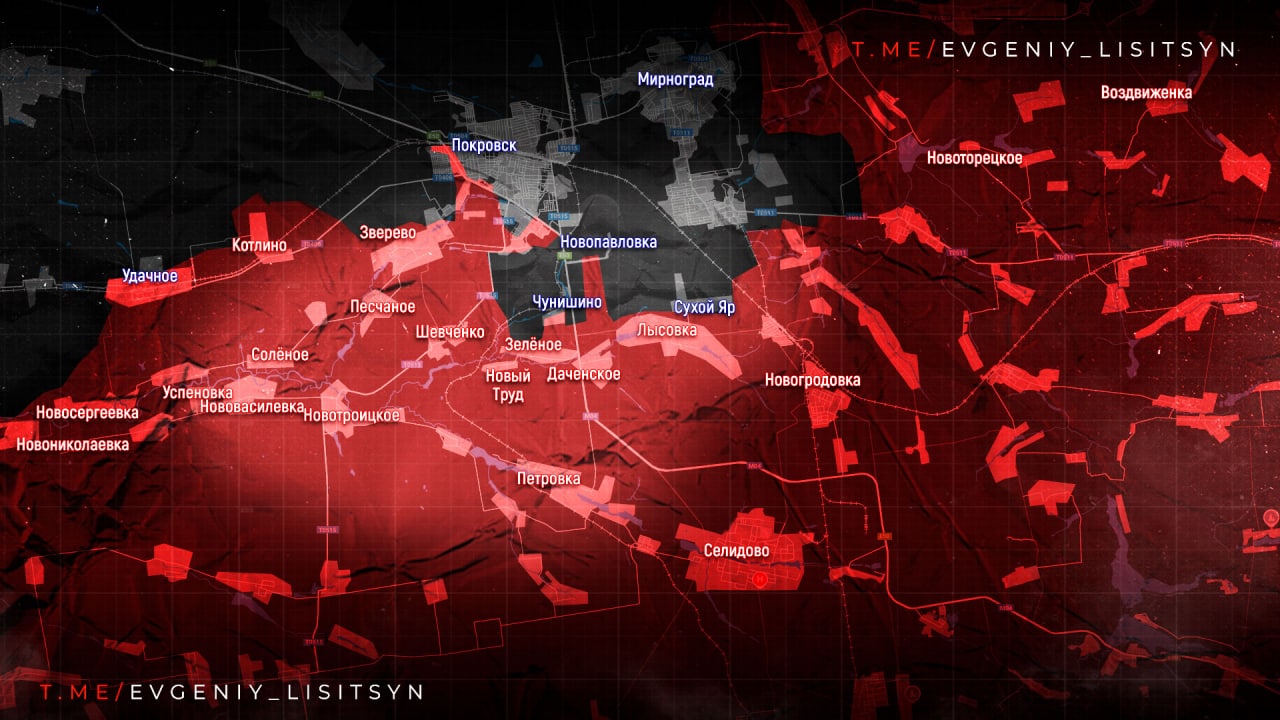 Наши контролируют мкр Лазурный, зачищают Солнечный, идут бои за Южный и Шахтёрский. Взято Чунишино, продвижение к Новопавловке. На севере - успехи в Родинском, Никаноровке и Вольном. Контролируем Золотой Колодезь, двигаемся к Петровке. Укрепились в Панковке и Владимировке.
