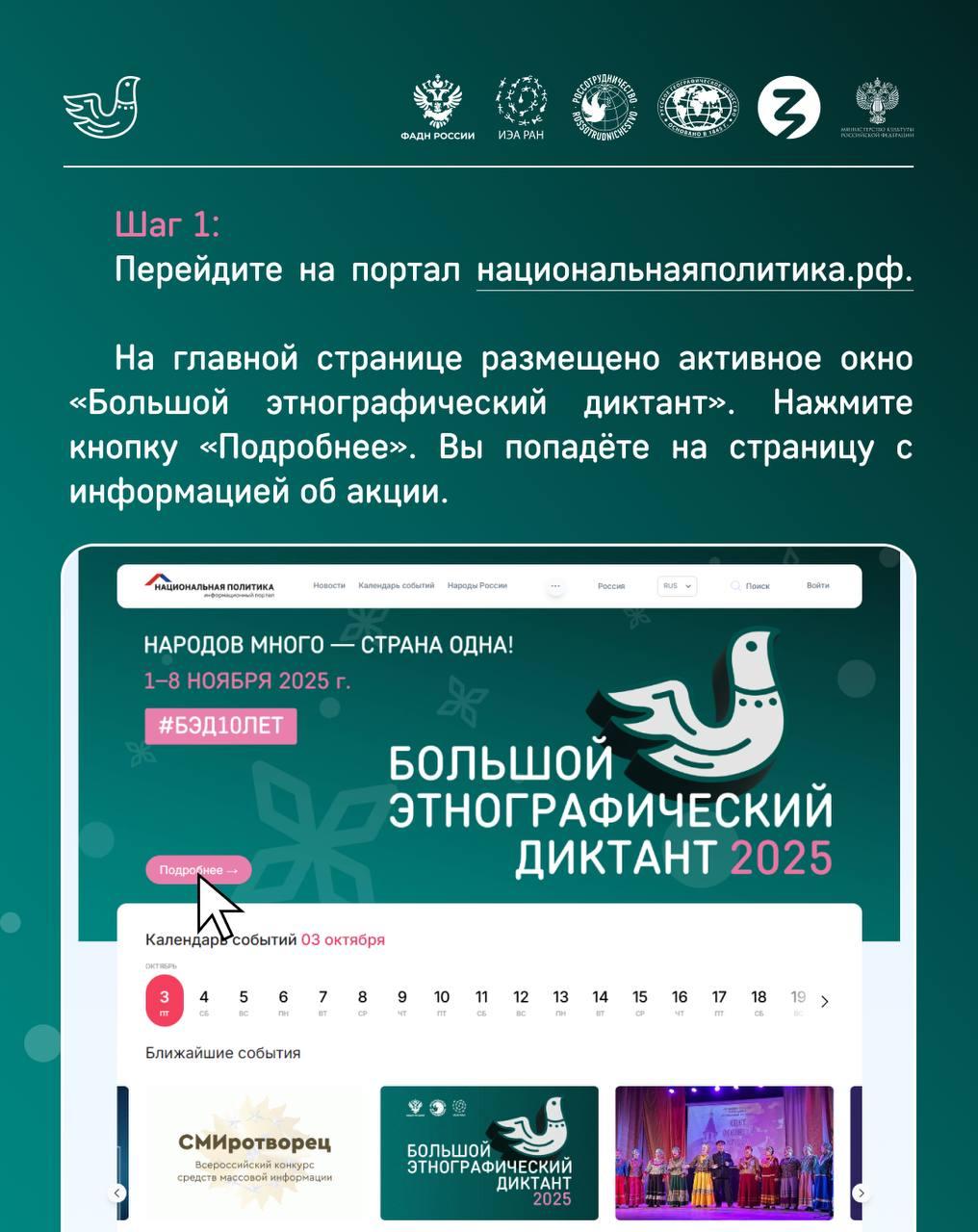 Ежегодно, в День народного единства, жители России и зарубежья участвуют в Международной просветительской акции «Большой этнографический диктант». Проект знакомит участников с культурой народов России и позволяет оценить общий уровень этнокультурной грамотности.