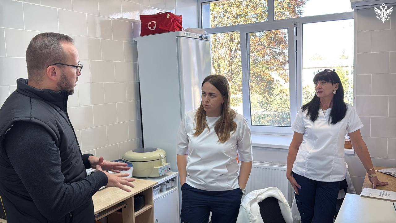 Проверку работы амбулатории провели представители народного контроля «Единой России» — депутат Херсонской областной Думы Евгений Кузьмин и советник Губернатора региона Виталий Асауленко.