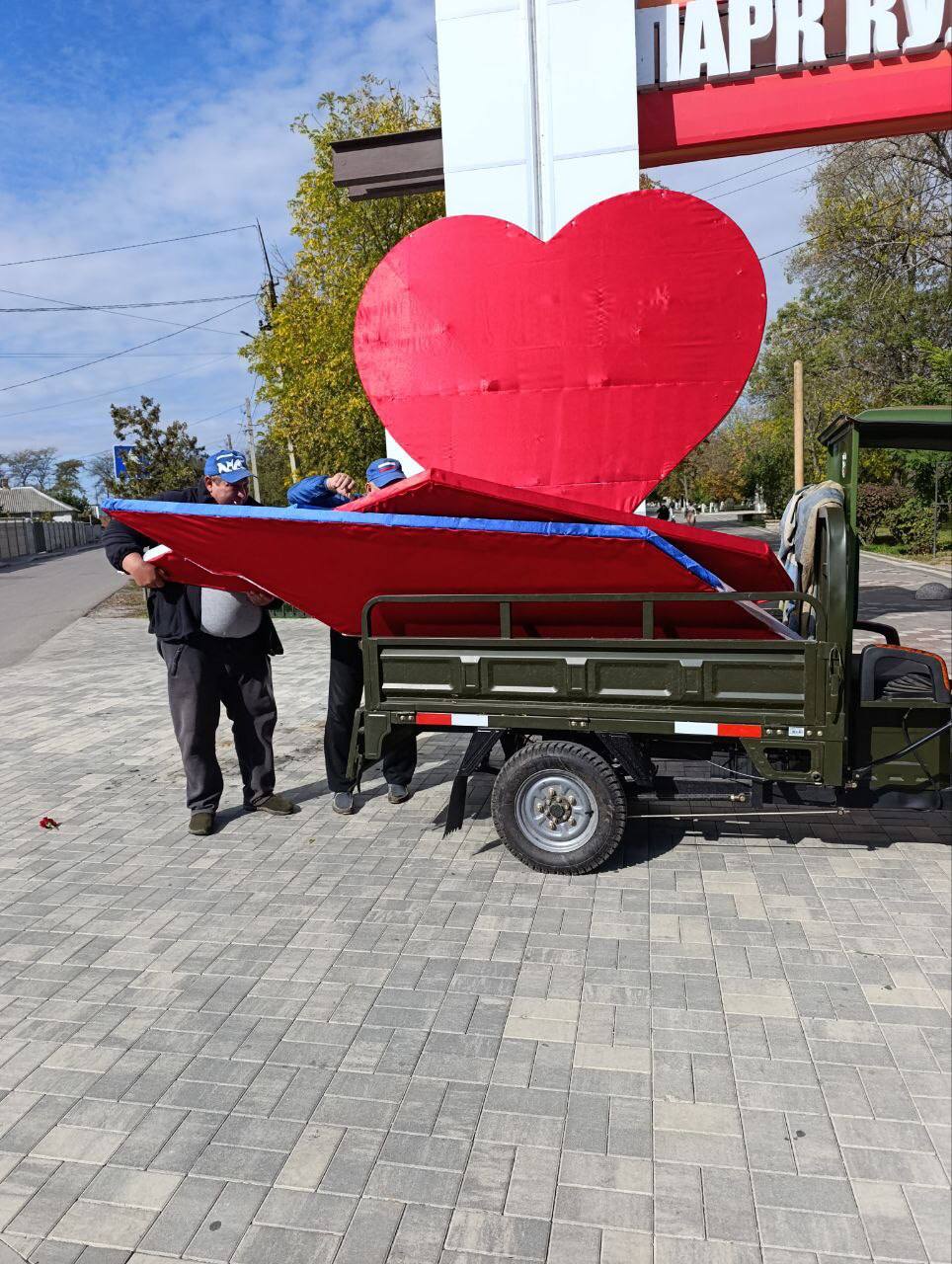 Демонтаж фотозоны у центрального входа в парк.