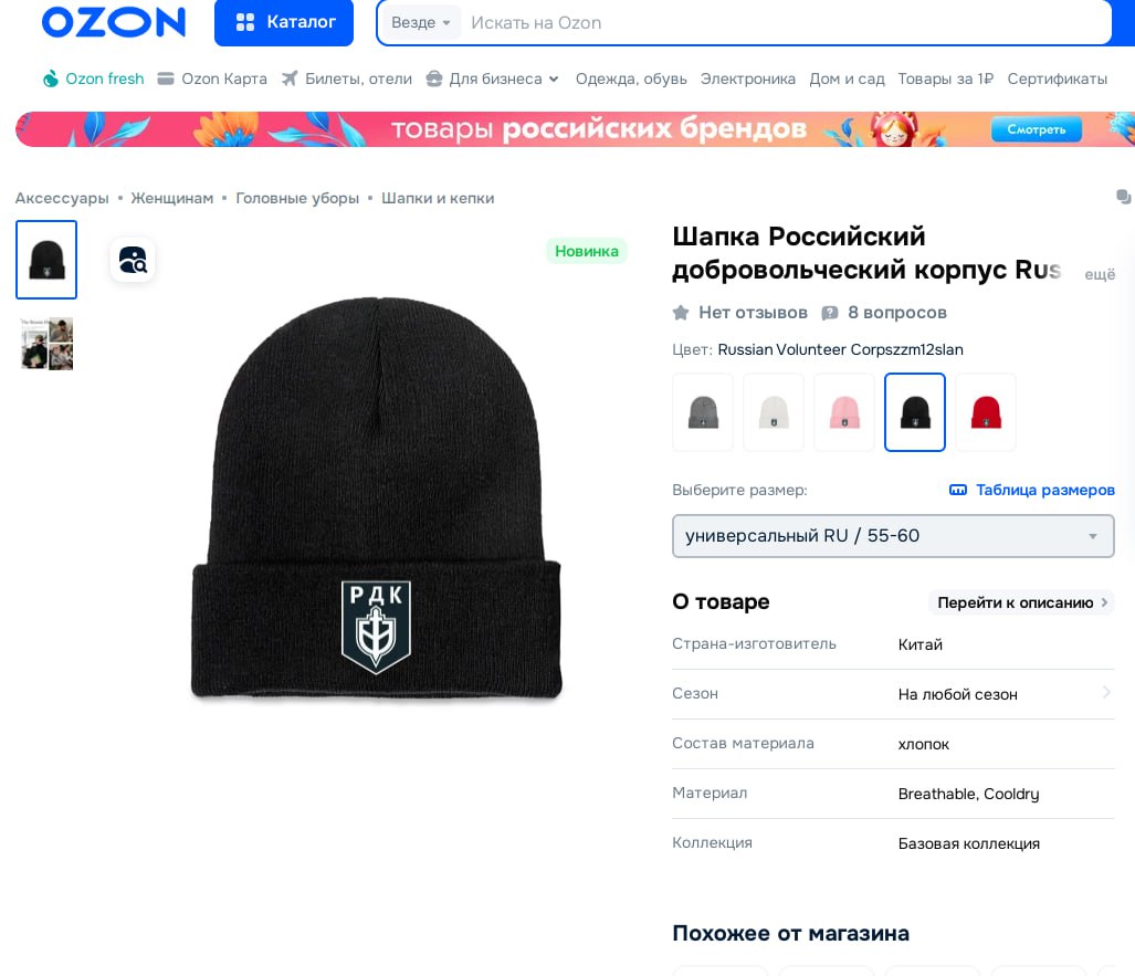 "Шапка Российский добровольческий корпус Russian Volunteer Corps https://ozon.ru/t/pmyilOC"