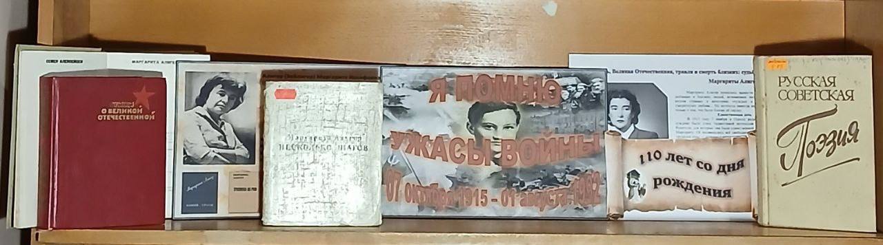 В библиотеке №2 г. Новая Каховка открылась тематическая выставка «Я помню ужасы войны». Экспозиция посвящена 110-летнему юбилею со дня рождения известной советской поэтессы Маргариты Иосифовны Алигер, который отмечается 7 октября 2025 года.