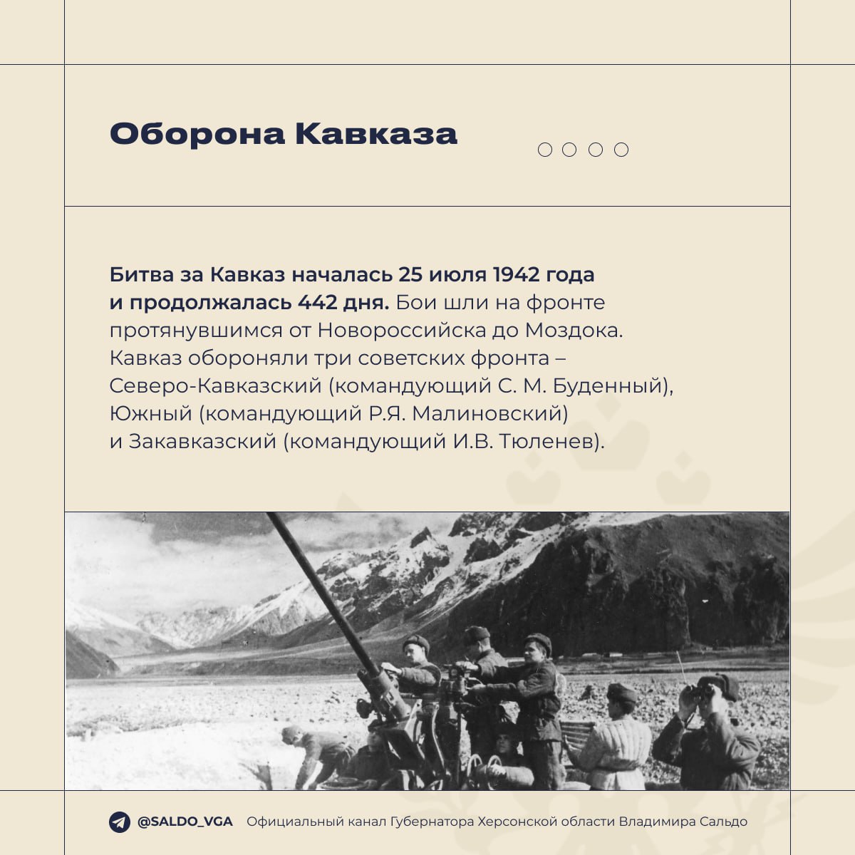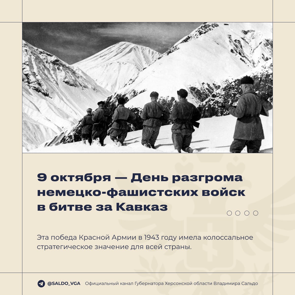 Владимир Сальдо вспомнил героев Кавказской битвы, завершившейся 9 октября 1943-го