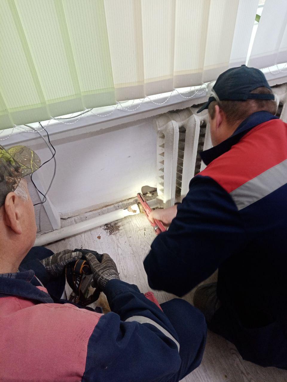 Специалисты на этой неделе демонтировали там два регистра и стояк отопления. Затем смонтировали новую трубу, которая проходит от подвала до первого этажа. Также установили три новых регистра.