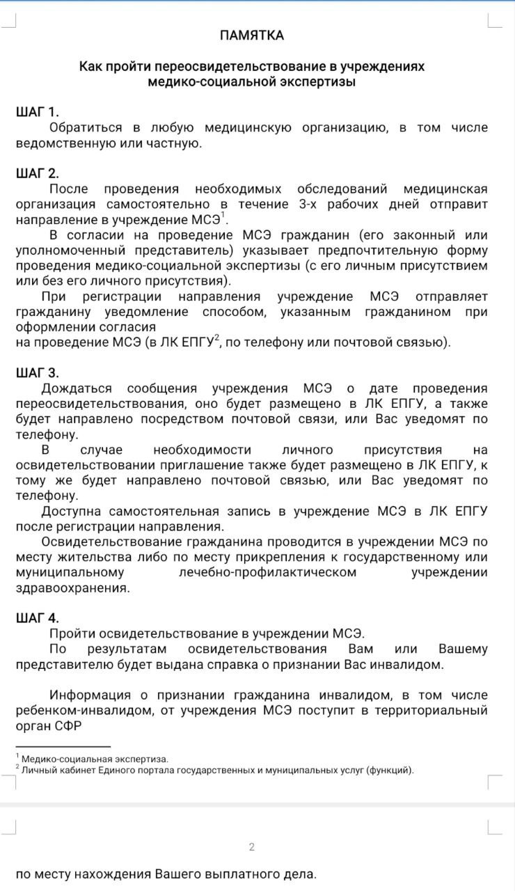 Памятка о том, как пройти переосвидетельствование в учреждениях медико-социальной экспертизы.