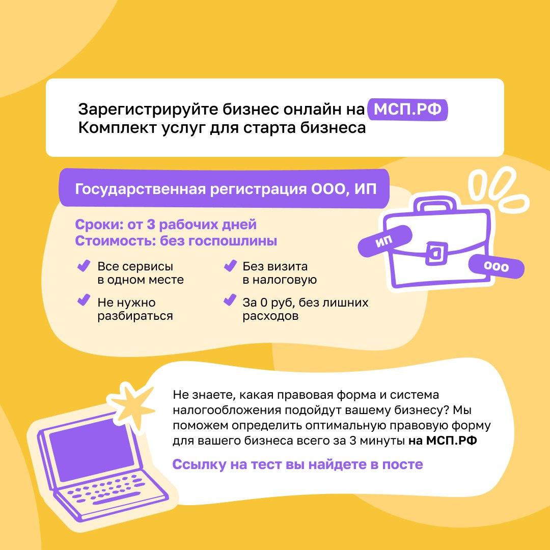 Не знаете, какую форму выбрать? Пройдите бесплатный тест на Цифровой платформе МСП.РФ — он определит подходящий вариант всего за 3 минуты.