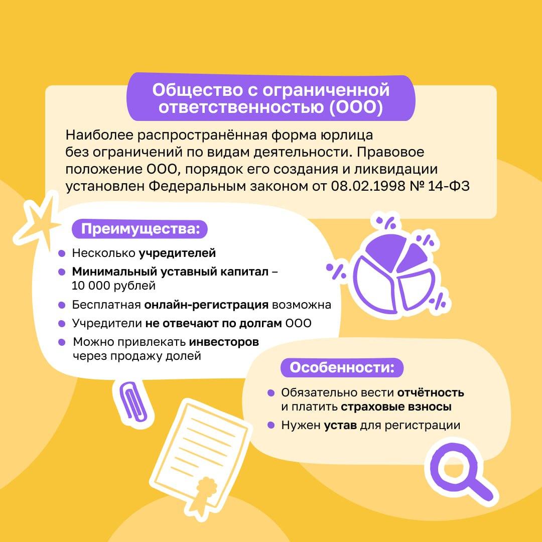 Каждая правовая форма имеет свои плюсы и ограничения. В карточках разобрали главное: налоги, регистрацию, ответственность и возможности.