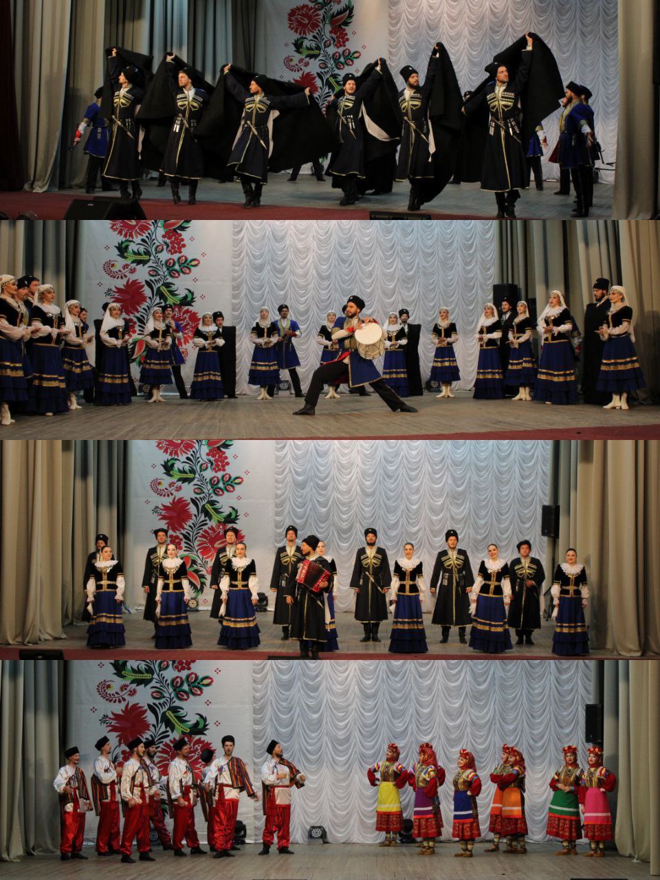 Артисты подготовили концертную программу «Едут терцы – казаки…», основанную на уникальном фольклоре терского и некрасовского казачества, которая подарила зрителям незабываемые впечатления и яркие эмоции. Финальная вокально-хореографическая композиция "Вместе мы сила - мы одна страна" вызвала у всех присутствующих восхищение и чувство единения.