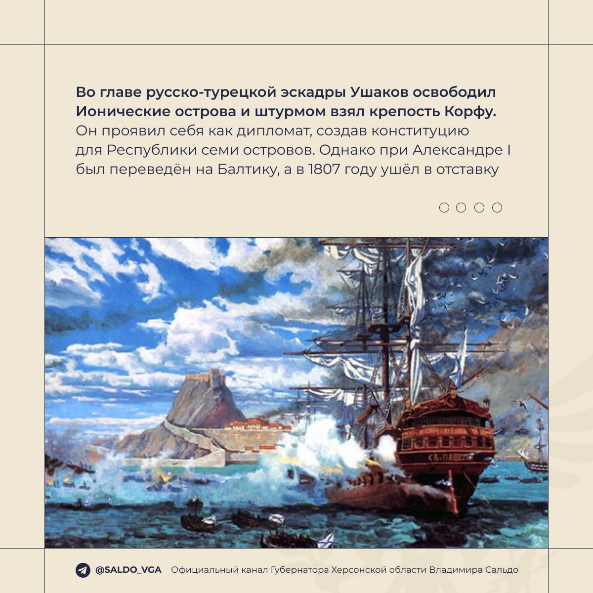 Владимир Сальдо: 15 октября Православная церковь вспоминает святого праведного воина Фёдора Ушакова — великого флотоводца и защитника Отечества