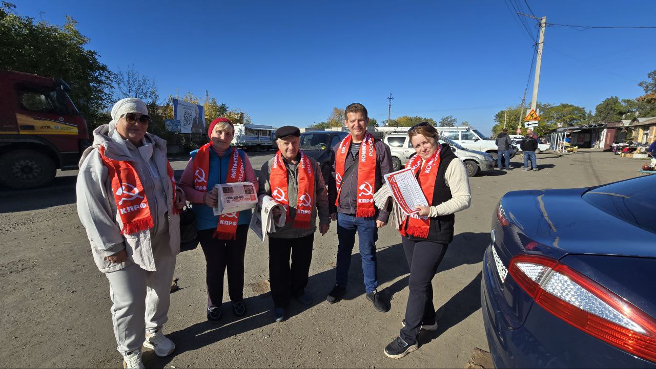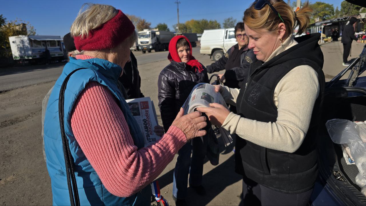 Коммунисты провели опрос среди жителей и гостей населенного пункта и раздали свежий выпуск партийной газеты «Херсонская правда».
