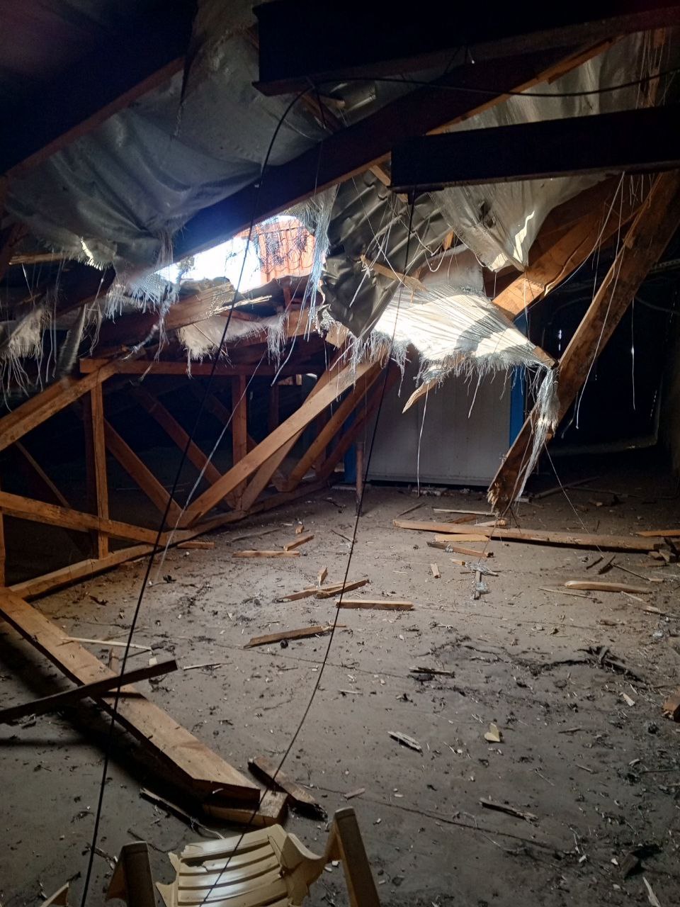 "Повреждена крыша и стены здания. Один из дронов ВСУ не сдетонировал, был обезврежен саперами. Пострадавших нет", — сообщили в Администрации округа.