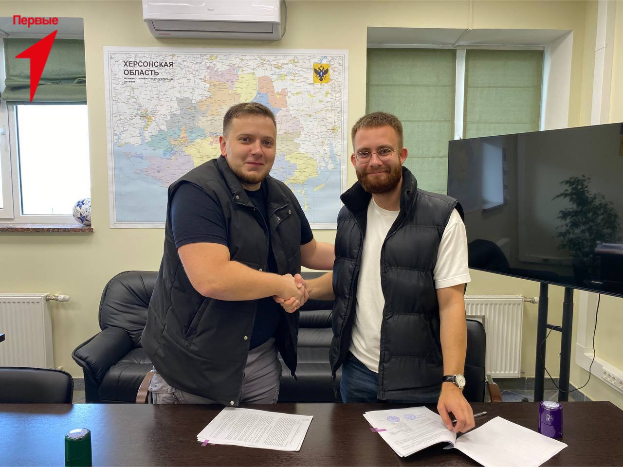 Соглашение было подписано между заместителем министра молодежной политики Херсонской области Максимом Коростеленко и Председателем Движения Первых региона Алексеем Лаврентьевым.