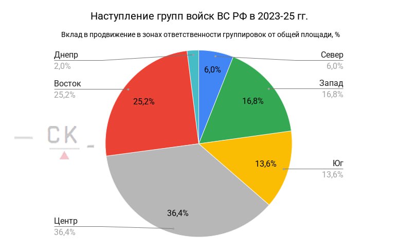 Графики интенсивности наступления ВС РФ в зонах ответственности групп войск в 2023-25 годах
