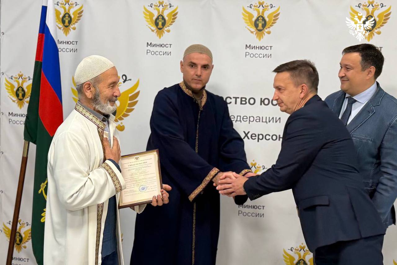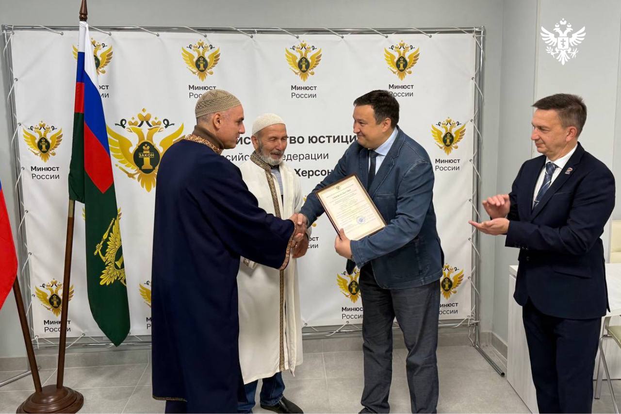 При поддержке депутата Херсонской областной Думы Рустема Нимметулаева мусульманская религиозная община «Иман» из Новоалексеевки получила официальное свидетельство о государственной регистрации. Это событие выводит деятельность общины в правовое поле Российской Федерации и открывает множество возможностей.