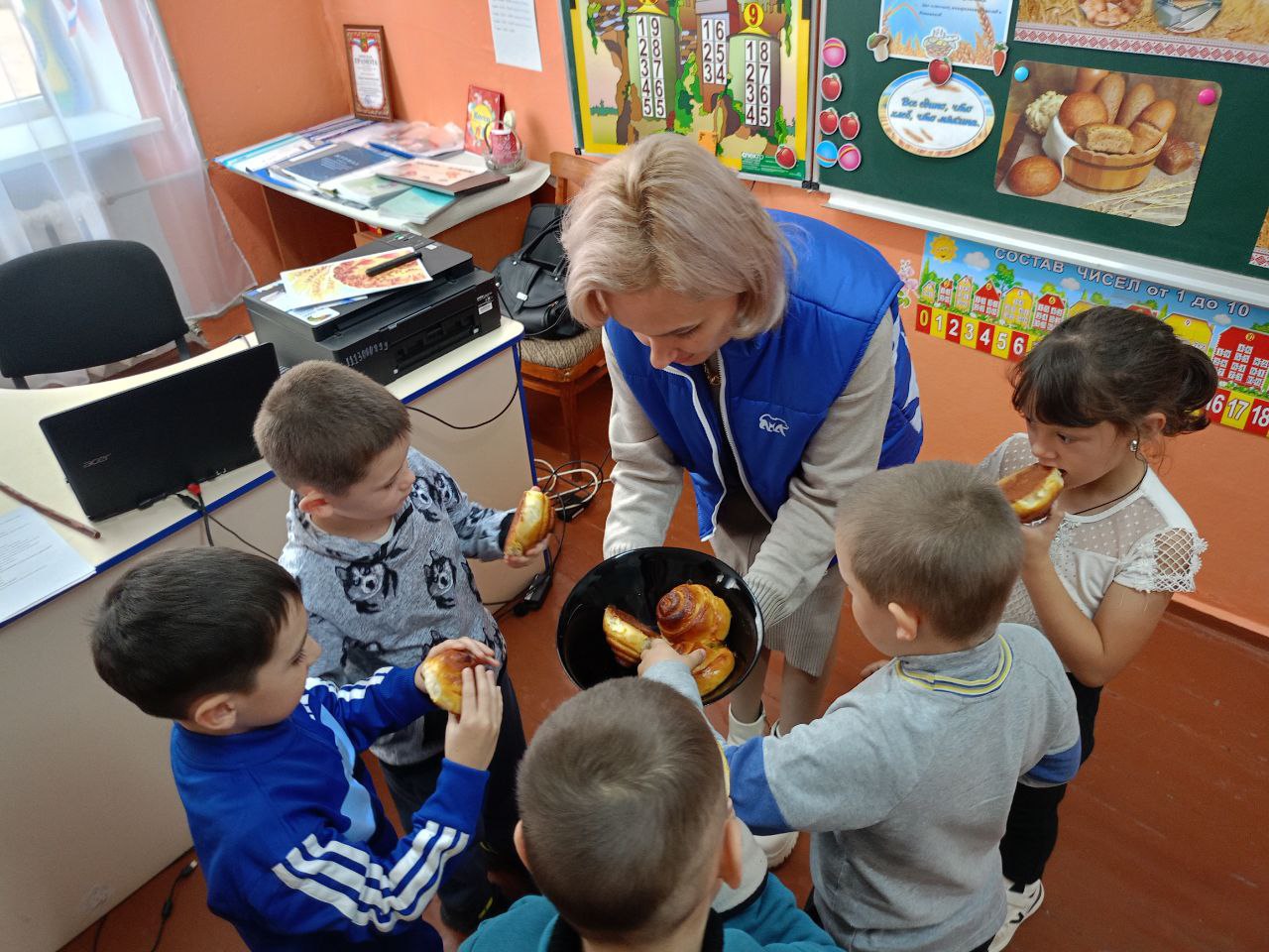 Сегодня секретарь первичного отделения партии " Единая Россия" Наталья Василенко совместно с Молодой Гвардией в лице Алёны Павличенко посетили ГБОУ ХО «Верхнесерогозская школа Нижнесерогозского района». Там вместе с маленькими учениками первого класса отметили Международный день хлеба! Этот праздник — отличный повод поговорить о значении хлеба в нашей жизни и провести увлекательную викторину.