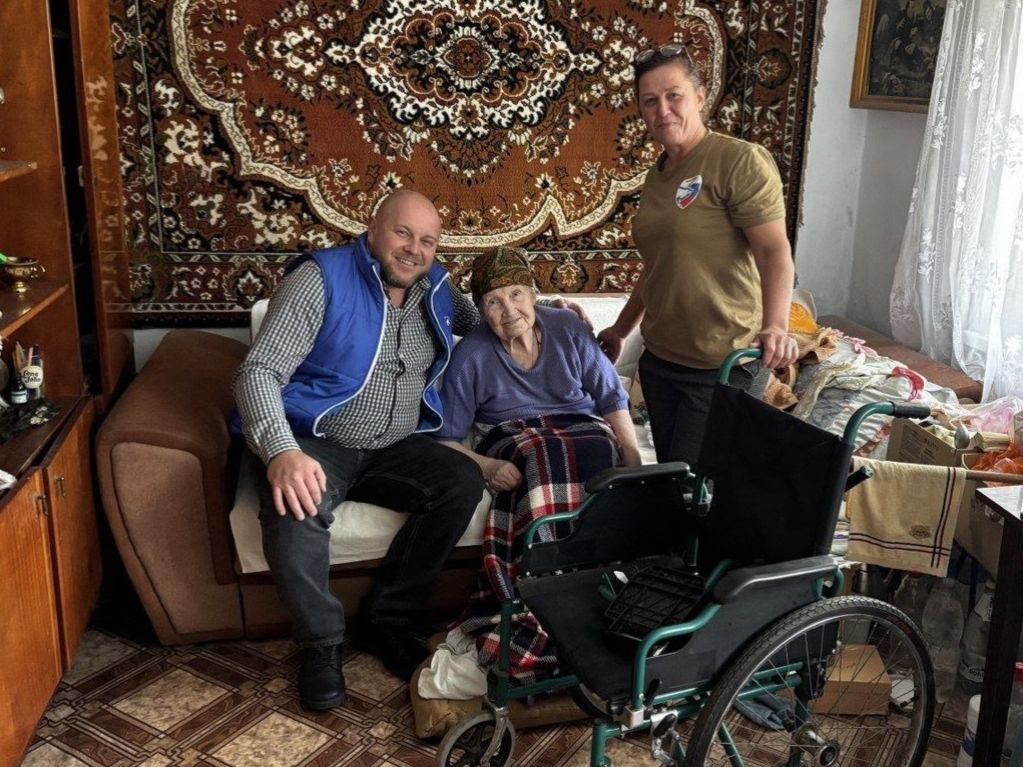Муниципальный депутат Виталий Кравченко и секретарь Каховской первички №2 Наталья Моргун помогли маломобильной пенсионерке: лично вручили Алле Сергеевне новую инвалидную коляску.
